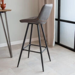 Industriële Barkruk Hoxton Taupe – Zithoogte 78 Cm – Kunstleder – Bruin