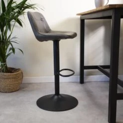 Industriële Barkruk Jason Antraciet – Zithoogte 59 Cm – Kunstleder – Grijs
