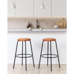 MORTON – Barkruk Set Van 2 – Oranje – Fluweel