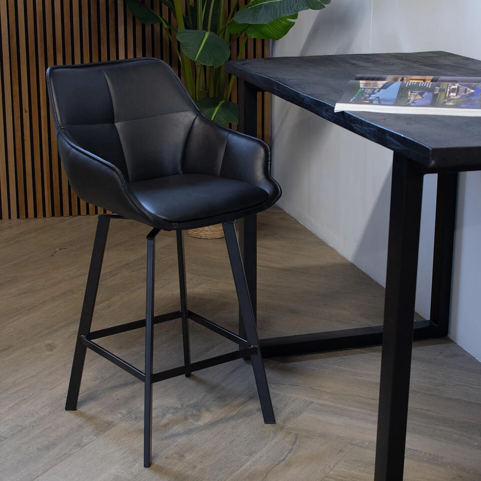 Materiaal: De zitting van de Barstoel Shannon is gemaakt van hoogwaardig PU leer, wat zorgt voor een comfortabele zitervaring. Het gebruik van metaal in de constructie zorgt voor een stevige en duurzame basis, waardoor de stoel lang meegaat en bestand is tegen dagelijks gebruik.
