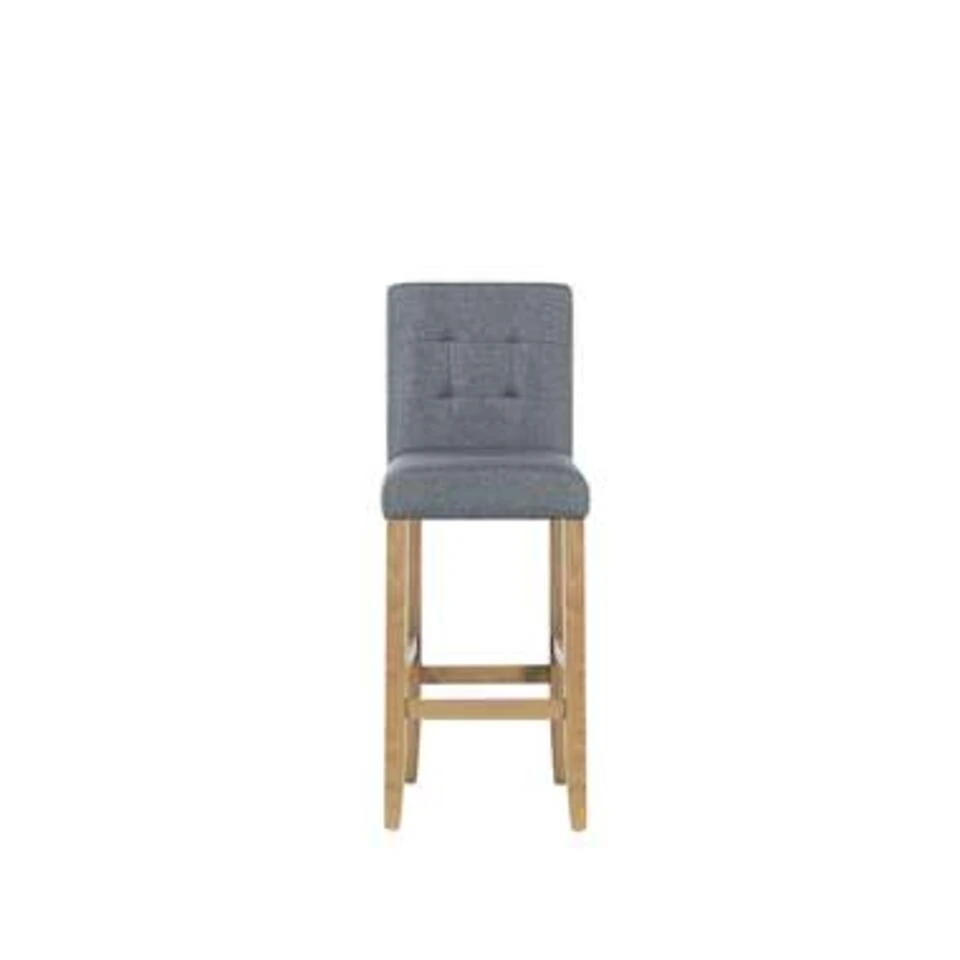 Comfortabele barkruk. Een gezellige avond wordt binnenkort nog leuker met onze comfortabele barkruk. Met zijn elegante en tijdloze ontwerp past hij in elk interieur. De robuuste stoelpoten van bruin rubberhout, in combinatie met de zitting en rugleuning van hoogwaardige grijze stof, verlenen de barkruk een rustieke charme. Dankzij de aangename schuimvulling is deze barkruk ook ideaal voor langere zitperiodes. De hoge rugleuning zorgt voor een comfortabele zithouding. De brede dwarsbalken dienen als comfortabele voetsteun en geven de barkruk stabiliteit. Met zijn zithoogte heeft de barkruk de ideale hoogte voor aanrecht en bar. Deze stijlvolle barkruk mag niet ontbreken aan jouw gezellige bar of keuken.