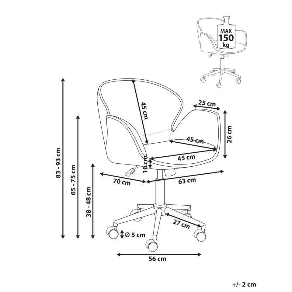 Hoogte zitting: 38-48 cm