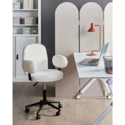 Met zijn royale afmetingen biedt de Bureaustoel Alleri voldoende ruimte om comfortabel te zitten, zelfs tijdens lange werkdagen. Bestel nu je Bureaustoel Alleri Beige en geniet van gratis thuisbezorging. Voeg stijl en comfort toe aan je werkplek met deze prachtige bureaustoel!