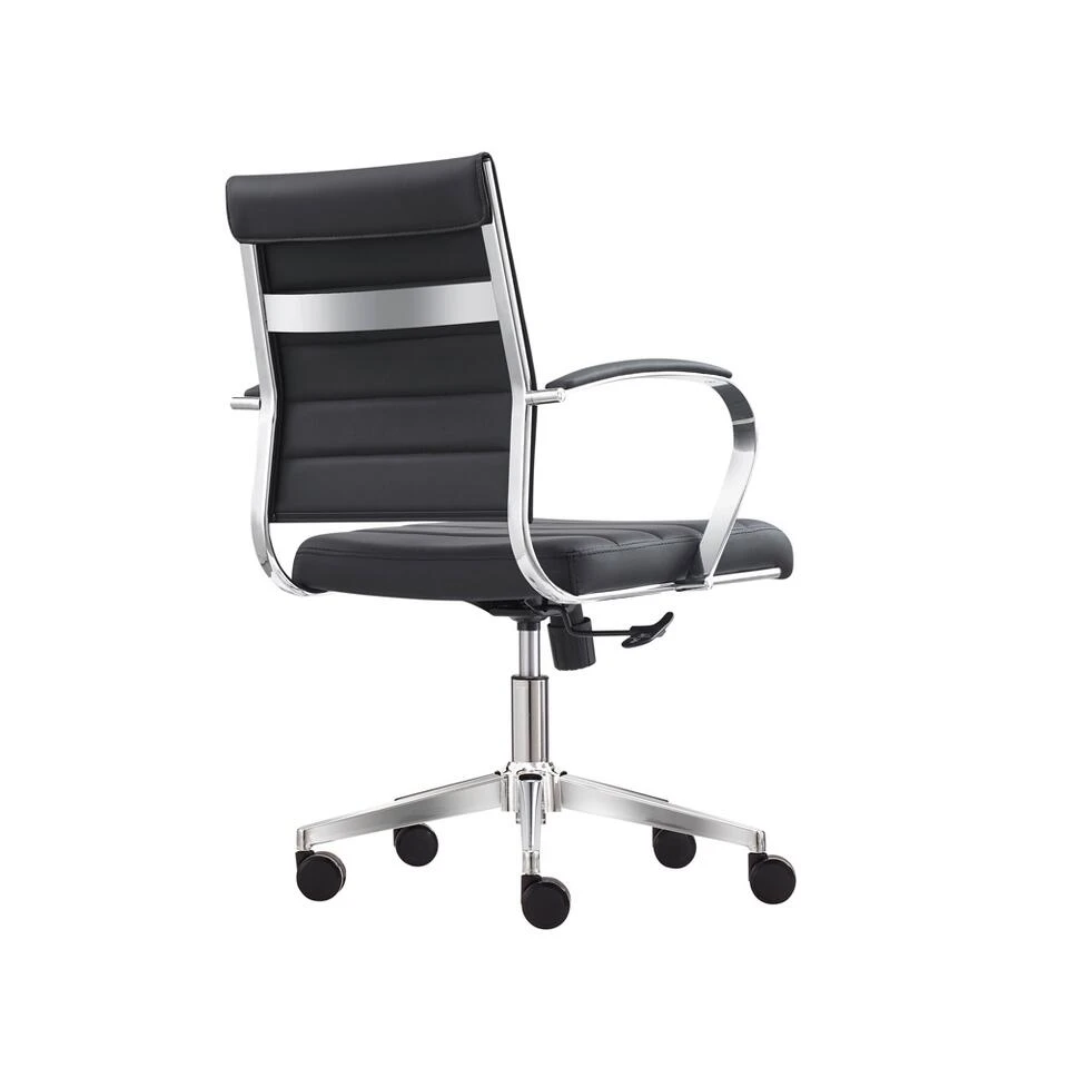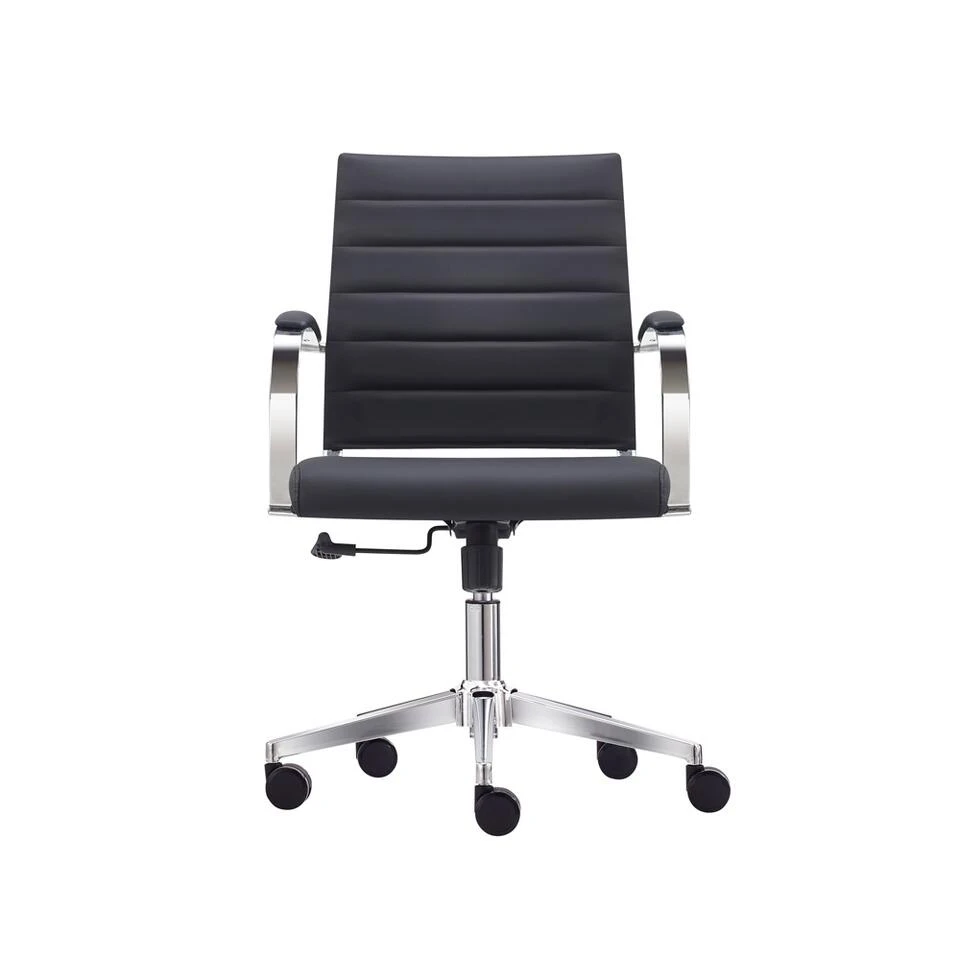 Deze stoel is zeer geschikt voor een luxe kantoor- en vergaderruimte of thuiswerkplek. De bureaustoel is traploos in hoogte verstelbaar door middel van een gasveer. Daarnaast is de stoel voorzien van een kantelmechanisme waardoor je een meer ontspannen zithouding aan kunt nemen tijdens het werken. Middels de draaiknop onder de zitting kun je het kantelen afstemmen op je lichaamsgewicht. Tot slot is de stoel 360° draaibaar om zijn eigen as voor extra gebruiksgemak.