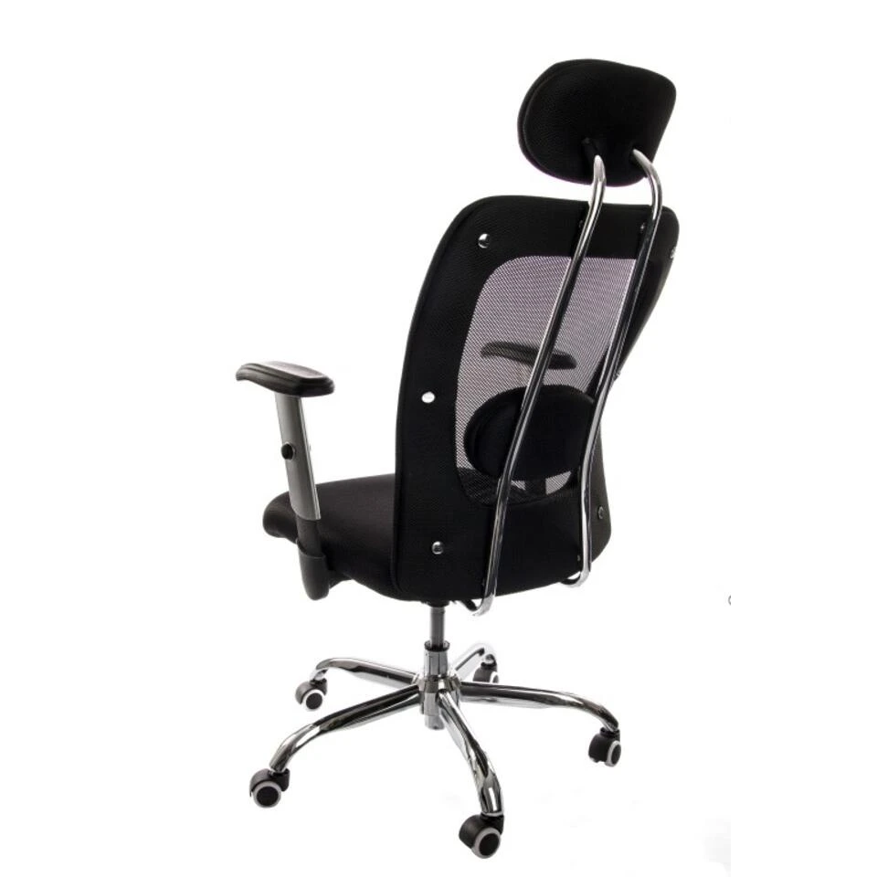De rugleuning van stoel Ergo is bekleed met slijtvaste en luchtige mesh bekleding. Dit open materiaal zorgt voor een goede ventilatie, zelfs op warme zomerdagen. De gasveer en stervoet zijn chroomkleurig wat zorgt voor een luxe uitstraling.