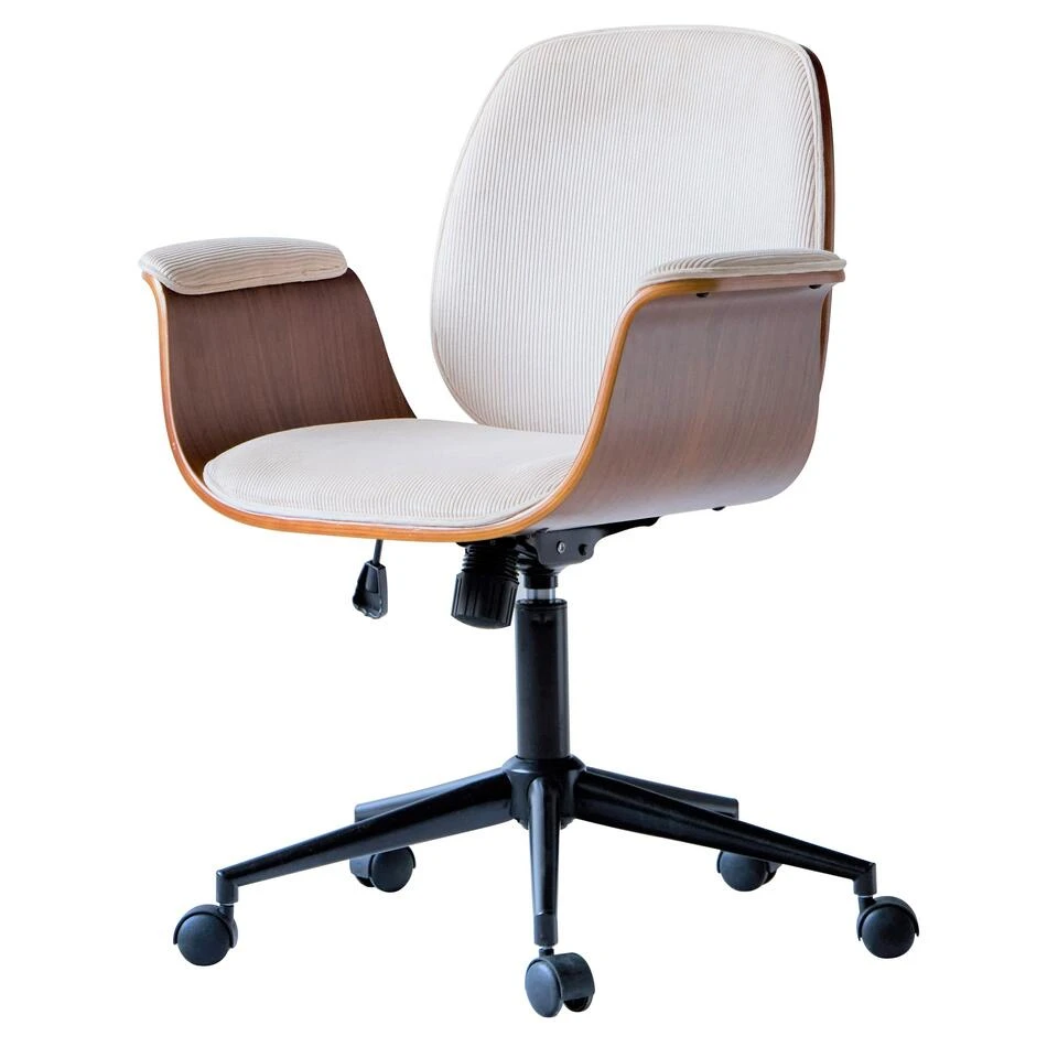 Bureaustoel Van Beige Stof Met Metalen Onderstel