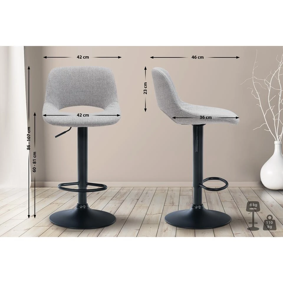 De barkruk is voorzien van comfortabele bekleding over de zitting en rugleuning, zodat je comfortabel kunt zitten voor langere perioden. De bekleding is afgewerkt met een slijtvaste stoffen bekleding.