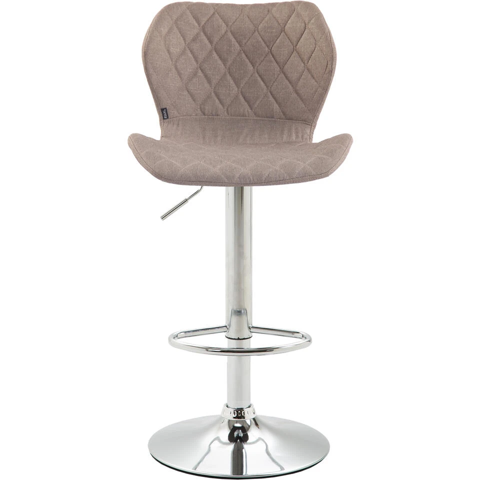 Deze barkruk geeft elke ruimte een exclusieve uitstraling en maakt niet alleen indruk met zijn uitstekende zitkarakteristieken, maar ook met zijn moderne design. De stijlvolle gewatteerde zitting met stoffen bekleding en de voetsteun maken het mogelijk om langer comfortabel te zitten. De toonbankkruk is in hoogte verstelbaar door middel van een gasveer en kan 360° gedraaid worden. De metalen trompetvoet is voorzien van een vloerbeschermer die krassen en schade aan de vloer voorkomt.