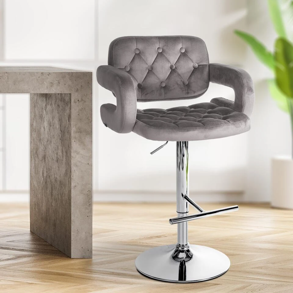CLP Barkruk Dublin Chroom Frame – Fluweel – Grijs