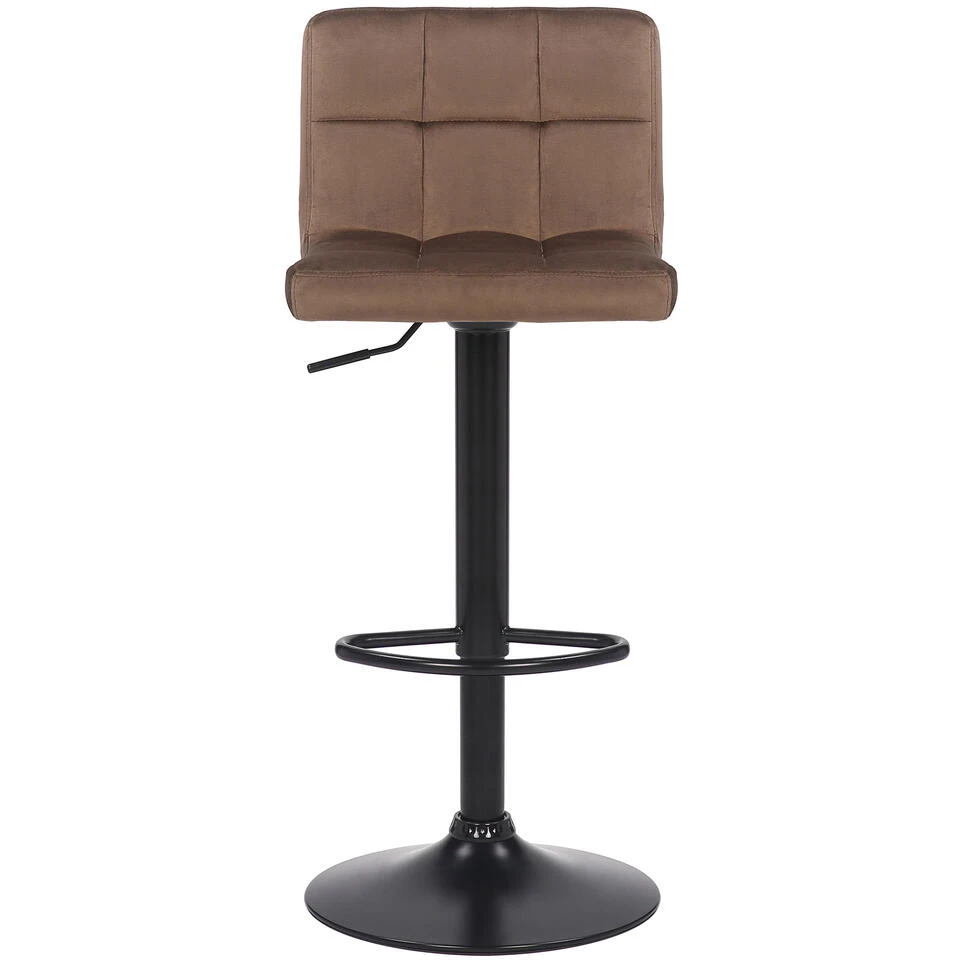 De barkruk Feni maakt indruk met zijn moderne uitstraling en de comfortfactor. De zitting met zijn trendy fluwelen bekleding is aangenaam gestoffeerd en biedt met de rugleuning het beste zitcomfort, zelfs voor enkele uren. Bovendien is deze keukenkruk in hoogte verstelbaar en past zich dus ideaal aan elke lichaamsgrootte aan. De trompetbodem van matzwart metaal is voorzien van een stijlvolle voetsteun die het zitten nog comfortabeler maakt. Een absoluut hoogtepunt voor gezellige uurtjes aan de bar.