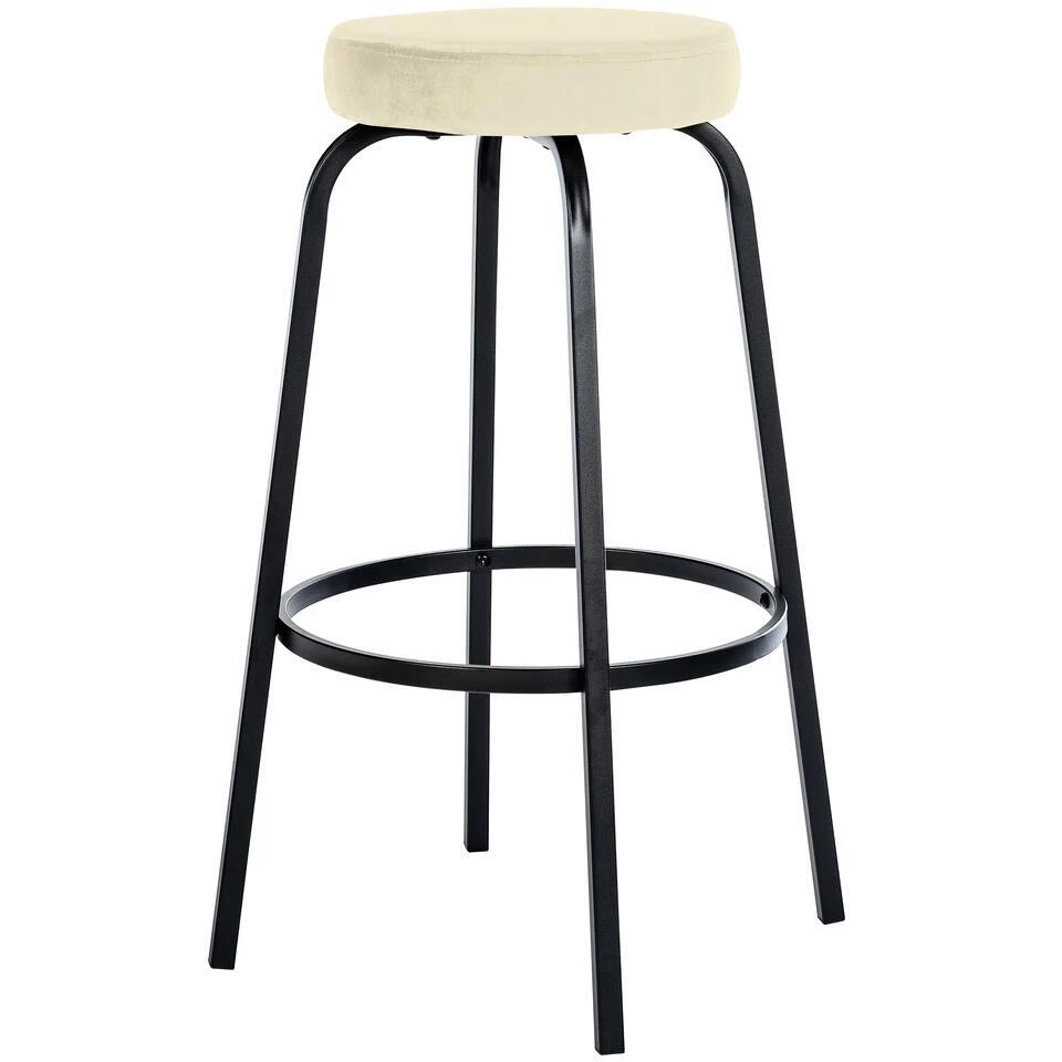 De ronde zitting van de barkruk is comfortabel, zelfs zonder armleuningen en rugleuning. Dit wordt gewaarborgd door de bekleding, naar keuze bekleed met fluweel of kunstleer.