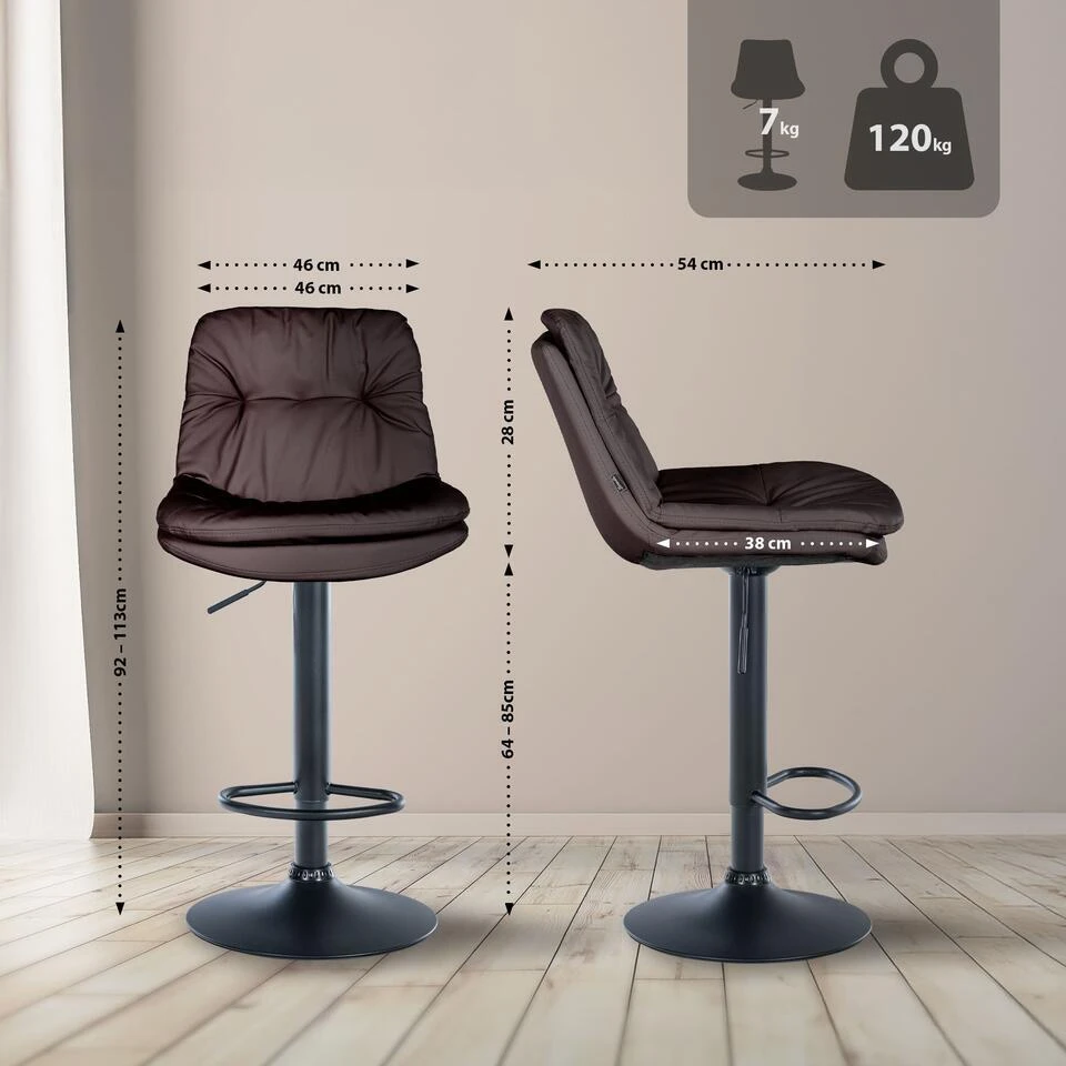 Het frame van de kruk en de modieuze bekleding geven de kruk een elegante uitstraling. De zitting is bekleed met onderhoudsvriendelijk kunstleer. Het metalen frame is in hoogte verstelbaar en de 360 graden draaifunctie zorgt voor veel bewegingsvrijheid.