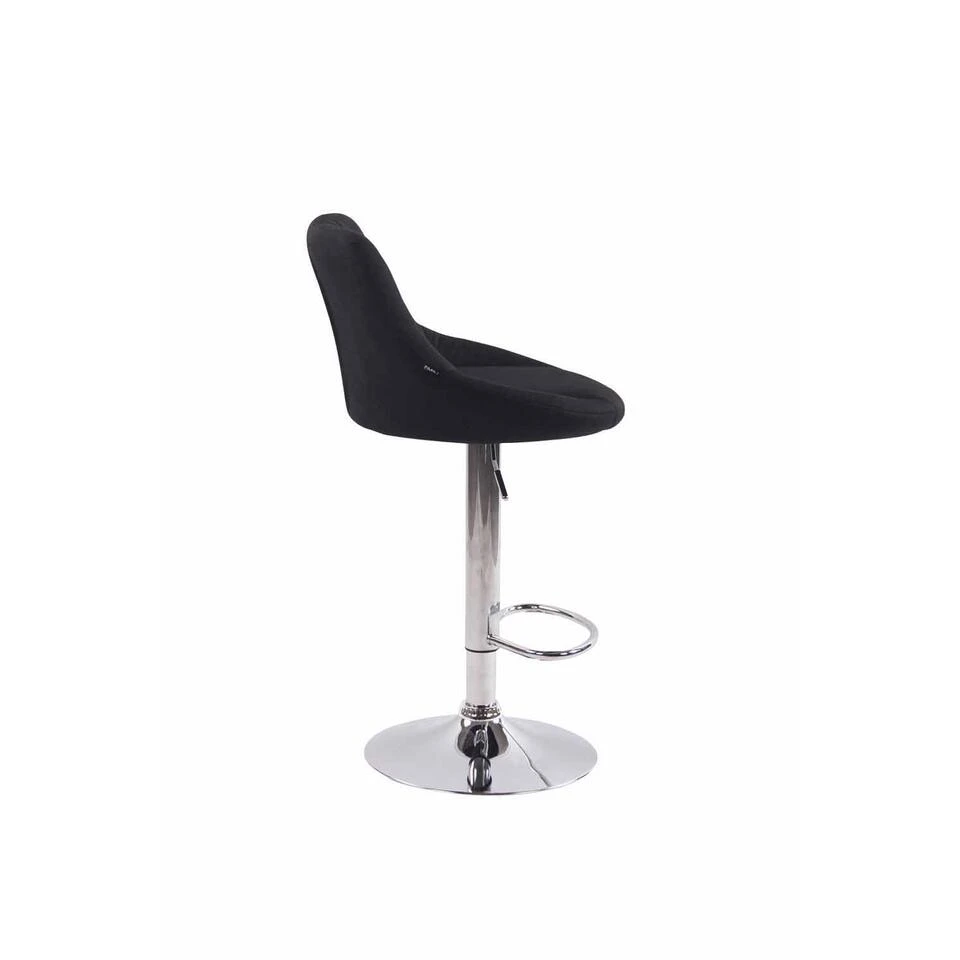 Deze barkruk maakt indruk met zijn stijlvolle ontwerp. De zitting is bekleed met stof en afgewerkt met gedetailleerde siernaden. Met behulp van de gasveer kan dit model traploos op de gewenste hoogte worden ingesteld, zodat het bij uitstek geschikt is voor elke bar. De voetsteun, die voor een zeer goed zitcomfort zorgt, kan synchroon met de hoogte van de zitting worden versteld. De zitting kan met de voetsteun 360° worden gedraaid. Het frame is gemaakt van chroom-look metaal, en er zijn vloerbeschermers onder de trompetvoet om te voorkomen dat de vloer wordt bekrast.