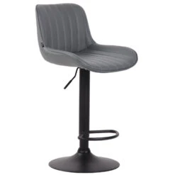 Deze barkruk geeft elke ruimte een exclusieve uitstraling en overtuigt niet alleen door zijn uitstekende ziteigenschappen, maar ook door zijn moderne design. De zitting is bekleed met onderhoudsvriendelijk kunstleer. Met behulp van de gasveer kan dit model traploos op de gewenste hoogte worden ingesteld, zodat het ideaal geschikt is voor elke aanrechthoogte. De voetsteun, die voor een zeer goed zitcomfort zorgt, kan synchroon met de hoogte van de zitting worden versteld. De zitting kan samen met de voetsteun 360° gedraaid worden. Het frame is naar keuze gemaakt van metaal in chroom-look, wit of zwart metaal. Bovendien zitten er vloerbeschermers onder de trompetvoet om te voorkomen dat er krassen op de vloer komen.