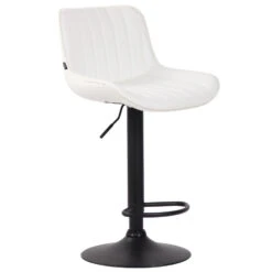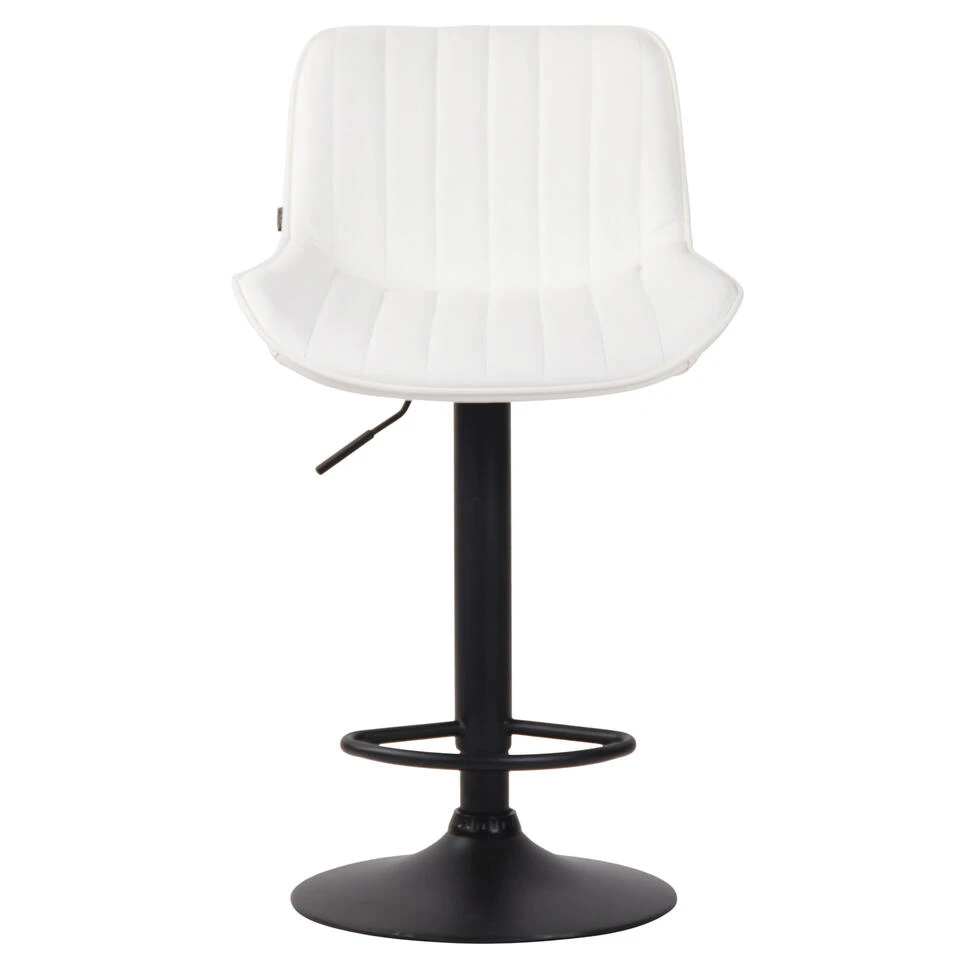 Deze barkruk geeft elke ruimte een exclusieve uitstraling en overtuigt niet alleen door zijn uitstekende ziteigenschappen, maar ook door zijn moderne design. De zitting is bekleed met onderhoudsvriendelijk kunstleer. Met behulp van de gasveer kan dit model traploos op de gewenste hoogte worden ingesteld, zodat het ideaal geschikt is voor elke aanrechthoogte. De voetsteun, die voor een zeer goed zitcomfort zorgt, kan synchroon met de hoogte van de zitting worden versteld. De zitting kan samen met de voetsteun 360° gedraaid worden. Het frame is naar keuze gemaakt van metaal in chroom-look, wit of zwart metaal. Bovendien zitten er vloerbeschermers onder de trompetvoet om te voorkomen dat er krassen op de vloer komen.
