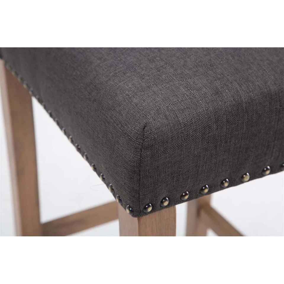 Opvallend stijlvol en tegelijk zeer robuust dankzij de decoratieve knoppen van koper, die langs de buitenkant van de naad lopen. Het frame van hout staat voor een duurzame productie, hoge stabiliteit en ongevoeligheid voor vocht. U kunt onze barkruk LOUISE in twee houtkleuren kiezen: antiek of antiek licht.