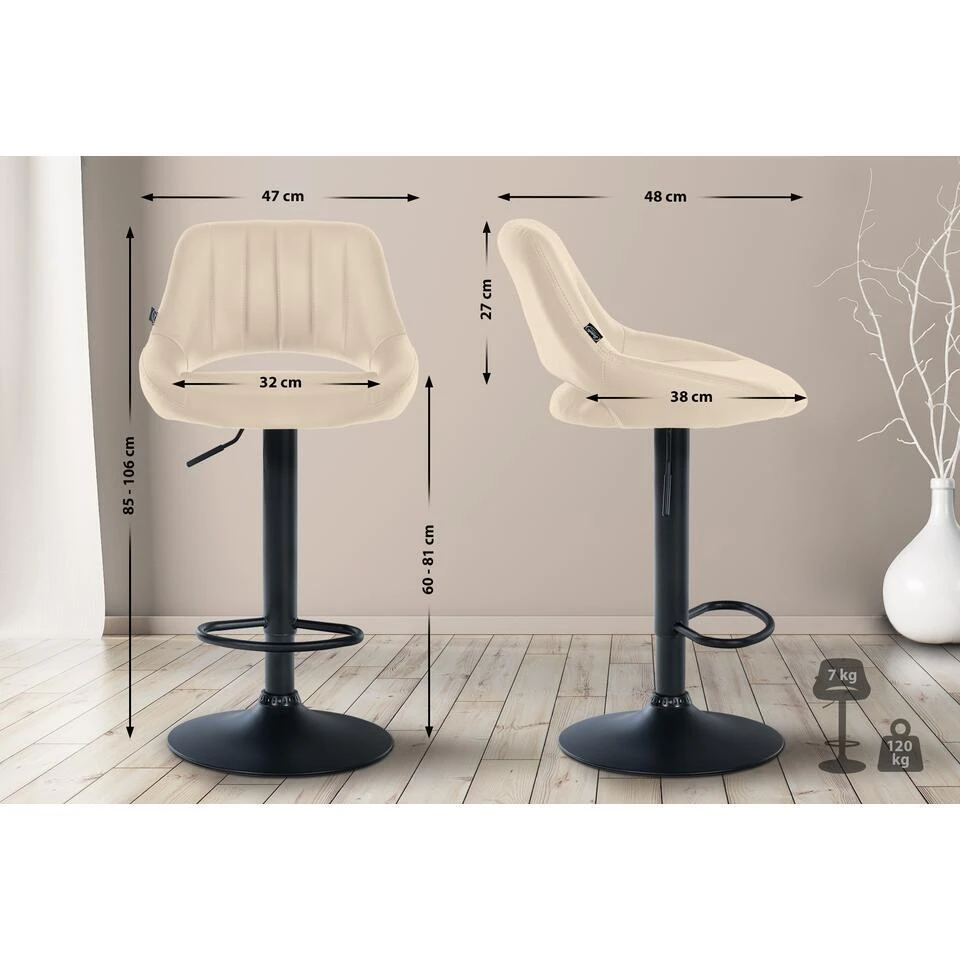 De barkruk Milet wordt gekenmerkt door zijn robuuste metalen frame, dat voor stabiliteit zorgt. De zithoogte kan flexibel worden ingesteld voor optimale aanpassing aan de tafelhoogte, terwijl de 360 graden draaifunctie veelzijdig gebruik mogelijk maakt. Dankzij de kunstlederen bekleding is de kruk eenvoudig te reinigen en zeer gemakkelijk te onderhouden. Een comfortabele zitting, aangevuld met een ergonomisch gevormde rugleuning en een praktische voetensteun, ondersteunt een gezonde zithouding. Geschikt voor gebruik in verschillende omgevingen zoals keukens en bars, integreert de kruk naadloos in verschillende inrichtingsstijlen.