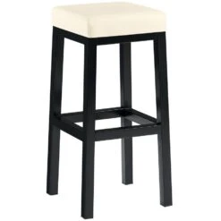 De vierkante zitting van de barkruk is comfortabel, zelfs zonder armleuningen en rugleuning. Hiervoor zorgt de bekleding, naar keuze bekleed met stof of kunstleer.