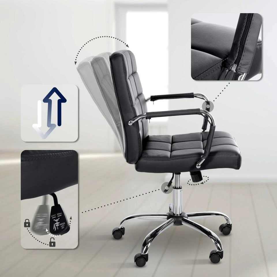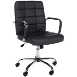De Ashland bureaustoel belichaamt moderne elegantie met praktische functionaliteit. De gewatteerde kunstlederen bekleding geeft hem niet alleen een geweldige flair, maar biedt ook een comfortabele zitervaring.