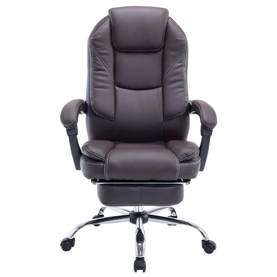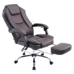Met de bureaustoel Castle wordt gezelligheid in de klassieke look aangekondigd. Een hoogwaardige bekleding en een onderhoudsvriendelijke kunstlederen hoes zorgen voor een comfortabel zitervaring, dat zelfs bij langdurig verblijf aanhoudt. De gemakkelijk instelbare voetsteun en rugleuning zorgen ook voor een aangename pauze tussendoor, zodat u achterover kunt leunen en uw benen kunt ontspannen. Dankzij de traploos verstelbare zithoogte garandeert de bureaustoel Castle ook altijd ergonomische stoelen. Hij staat stabiel op vijf lichtgewicht zwenkwielen en een frame van metaal in chroomlook.