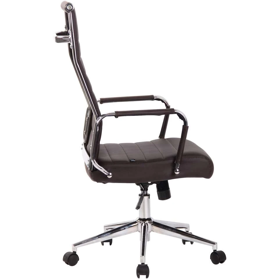 De exclusieve bureaustoel Columbus overtuigt niet alleen met zijn moderne uiterlijk, ook in termen van comfort kan niemand hem voor de gek houden. De hoogwaardige bekleding en de onderhoudsvriendelijke kunstlederen overtrek zorgen voor een aangename zitervaring. De zithoogte is traploos instelbaar en garandeert een ergonomische zitpositie. Bovendien is de bureaustoel uitgerust met een kantelmechanisme, dat meer bewegingsvrijheid biedt. Het elegante chromen frame en de stevige gebogen armleuningen met kunstlederen overkapping geven het geheel iets extra’s. De stabiliteit wordt verzekerd door het metalen frame in chroomlook.