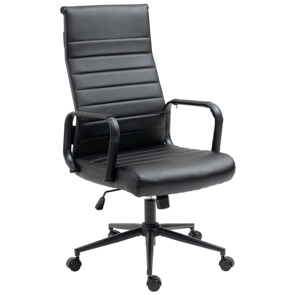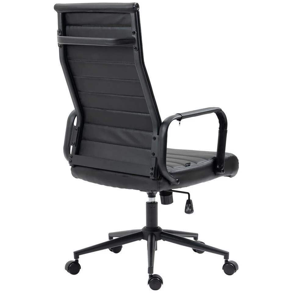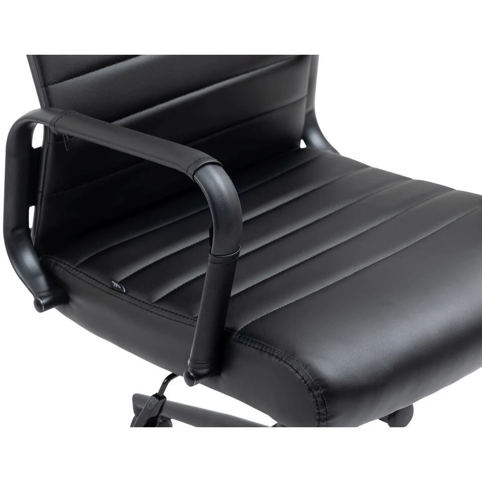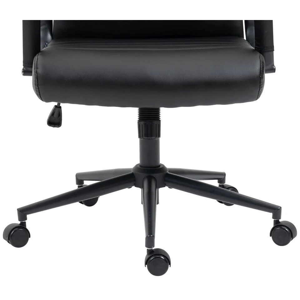 De exclusieve bureaustoel Columbus overtuigt niet alleen met zijn moderne uiterlijk, ook in termen van comfort kan niemand hem voor de gek houden. De hoogwaardige bekleding en de onderhoudsvriendelijke kunstlederen overtrek zorgen voor een aangename zitervaring. De zithoogte is traploos instelbaar en garandeert een ergonomische zitpositie. Bovendien is de bureaustoel uitgerust met een kantelmechanisme, dat meer bewegingsvrijheid biedt. Het elegante chromen frame en de stevige gebogen armleuningen met kunstlederen overkapping geven het geheel iets extra’s. De stabiliteit wordt verzekerd door het metalen frame in chroomlook.