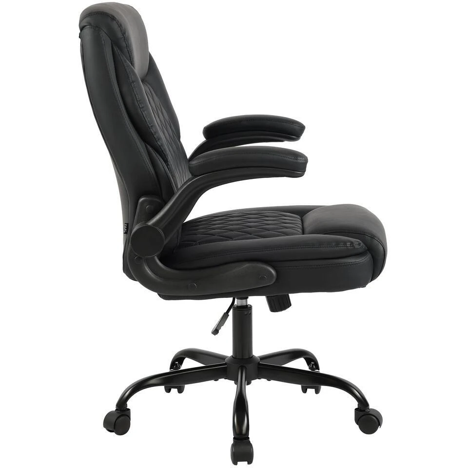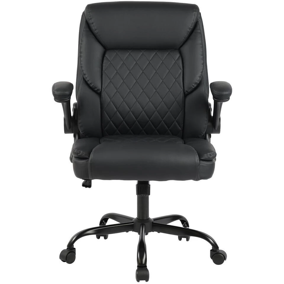 De zachte bekleding van zitting, rugleuning en armleuningen is bekleed met hoogwaardig en onderhoudsvriendelijk kunstleer. Het ruitvormige stikselpatroon draagt bij aan een moderne uitstraling.
