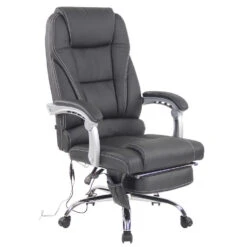 Ook de voetsteun en de kantelbare rugleuning van de ergonomische stoel zorgen voor een buitengewoon zitcomfort – leun achterover en geniet! De bureaustoel is traploos in hoogte verstelbaar en kan 360 graden worden gedraaid. Hij staat stevig op het metalen frame en vijf lichtlopende wielen die de stoel mobiel houden, zelfs op harde vloeren en tapijt. De massagestoel kan een belasting van maximaal 136 kg aan.