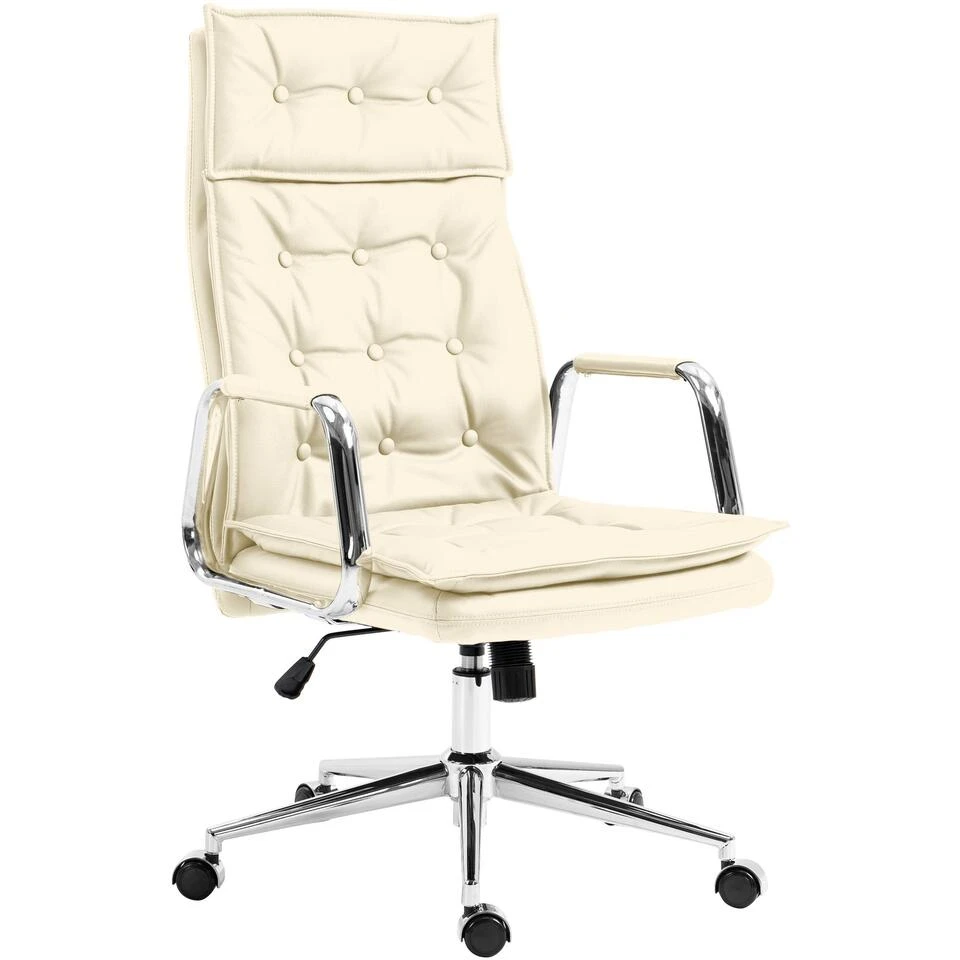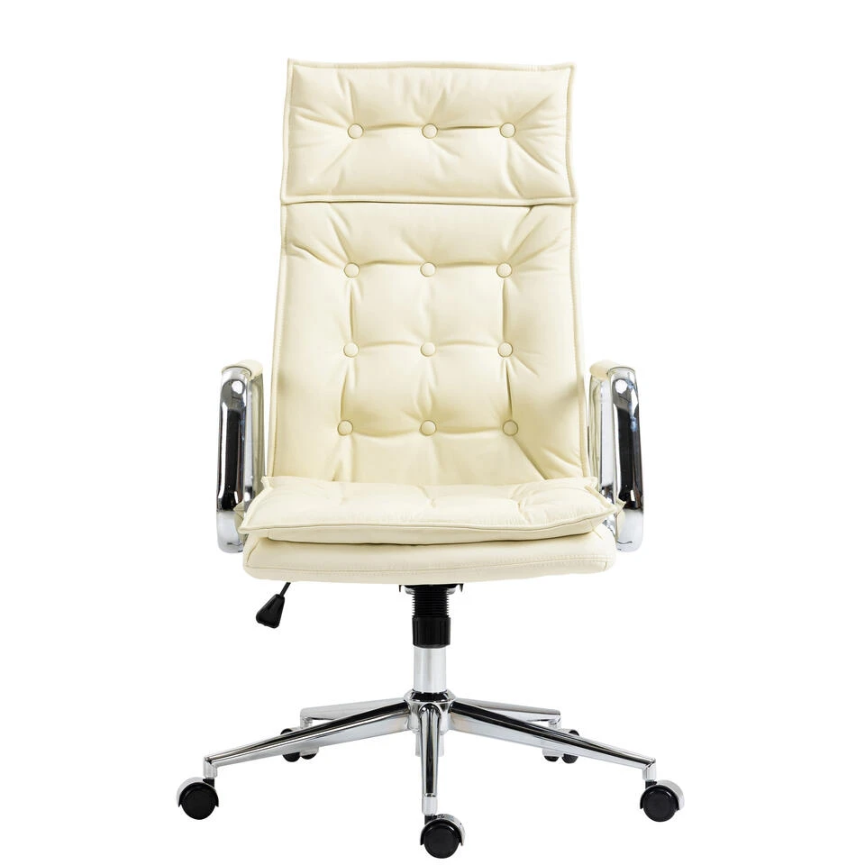 De exclusieve Sotira bureaustoel is een bureaustoel met een zeer hoogwaardige stoffering en een moderne uitstraling. De echt lederen bekleding in Chesterfield-design ziet er niet alleen heel mooi uit, ze is ook bijzonder robuust en gemakkelijk schoon te maken. Een stevig metalen frame in chroomlook zorgt ook voor een veilige stand. De zithoogte is traploos instelbaar en garandeert urenlang ergonomisch zitten. Het ingebouwde kantelmechanisme zorgt ook voor meer bewegingsvrijheid. De Sotira bureaustoel staat stevig op vijf lichtlopende wieltjes.