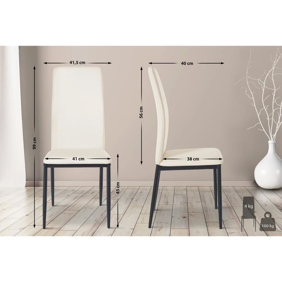 De basis voor deze eetkamerstoel is het stabiele vierpotige frame van stevig metaal. Dit betekent dat de Savino stoel zonder aarzeling tot 100 kilo kan worden belast. Vloerbeschermers voorkomen beschadiging van gevoelige vloeren. Er zijn verschillende kleuren verkrijgbaar.