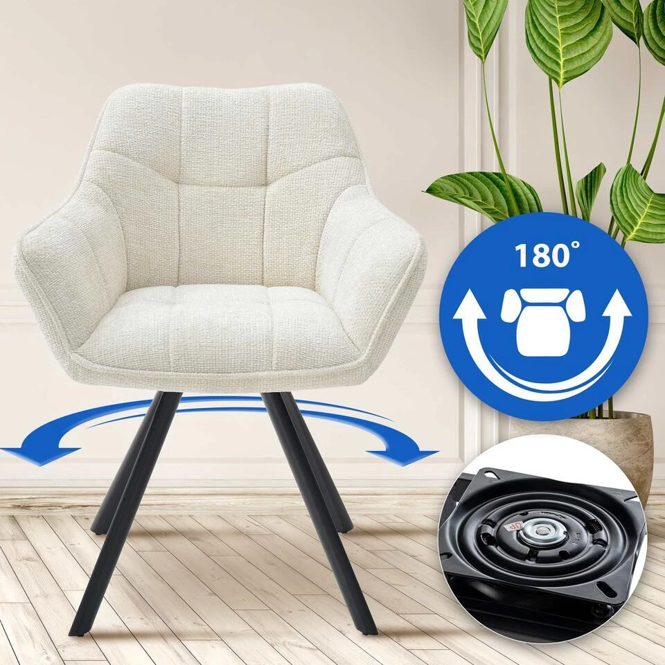 De Scott eetkamerstoel is verkrijgbaar met een stoffen of fluwelen bekleding. De zogenaamde draaifunctie zorgt ervoor dat de stoel over een bereik van 180 graden kan worden gedraaid, wat voor extra bewegingsvrijheid zorgt. De zitschaal keert automatisch terug naar de uitgangspositie.