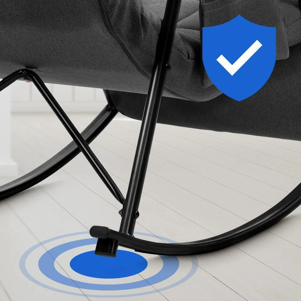 De bekleding met modieus doorgestikt patroon is verkrijgbaar met een stoffen of fluwelen hoes. Het gepoedercoate metalen frame draagt bij aan de moderne uitstraling en hoge stabiliteit. De schommelstoel kan een gewicht tot 125 kilo veilig dragen.