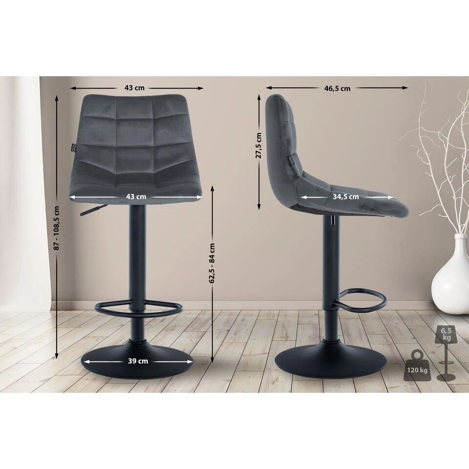 De bekleding van de kruk is gemaakt van zacht fluweel en heeft een klassiek gewatteerd patroon. Het stevige metalen frame van de kruk is verkrijgbaar in de kleur chroom of zwart en zorgt voor een hoge stabiliteit en duurzaamheid. Het minimalistische en moderne ontwerp van de kruk past naadloos in elk interieur. De keukenkruk is eenvoudig te monteren en gemakkelijk schoon te maken. Voor het schoonmaken is een vochtige katoenen doek voldoende om licht vuil af te nemen.
