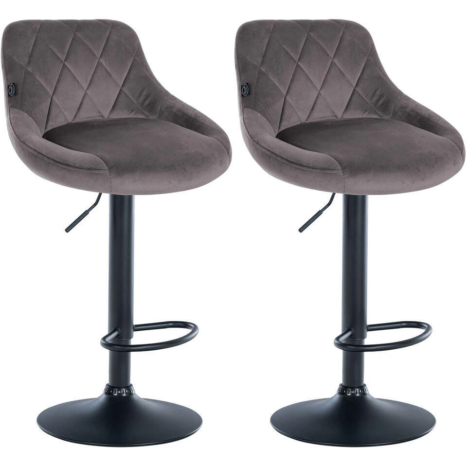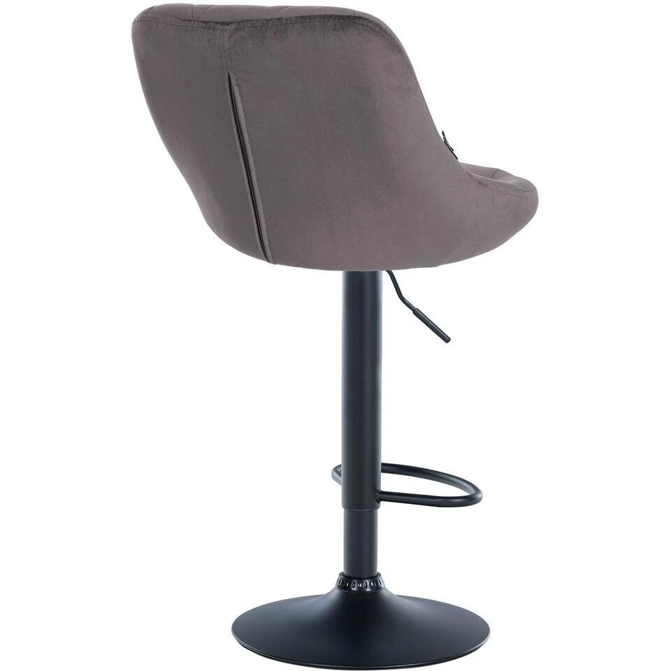 Deze krukken maken indruk met hun stijlvolle ontwerp. De zitting is bekleed met fluwelen stof en afgewerkt met gedetailleerde siernaden. Met behulp van de gaslift kan dit model traploos op de gewenste hoogte worden ingesteld, zodat het ideaal past bij elke baliehoogte. De voetsteun, die voor een uitstekend zitcomfort zorgt, kan synchroon met de hoogte van de zitting worden versteld. De zitting kan samen met de voetsteun 360° worden gedraaid. Het frame is gemaakt van metaal en onder de trompetvoet zitten vloerbeschermers om krassen op de vloer te voorkomen.