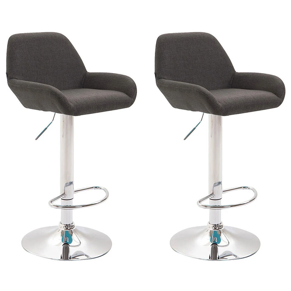 CLP Set Van 2 Barkrukken Braga Chroom Frame Stof – Grijs