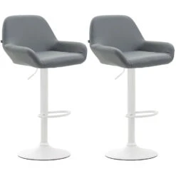 CLP Set Van 2 Barkrukken Braga Wit Frame Kunstleer – Grijs