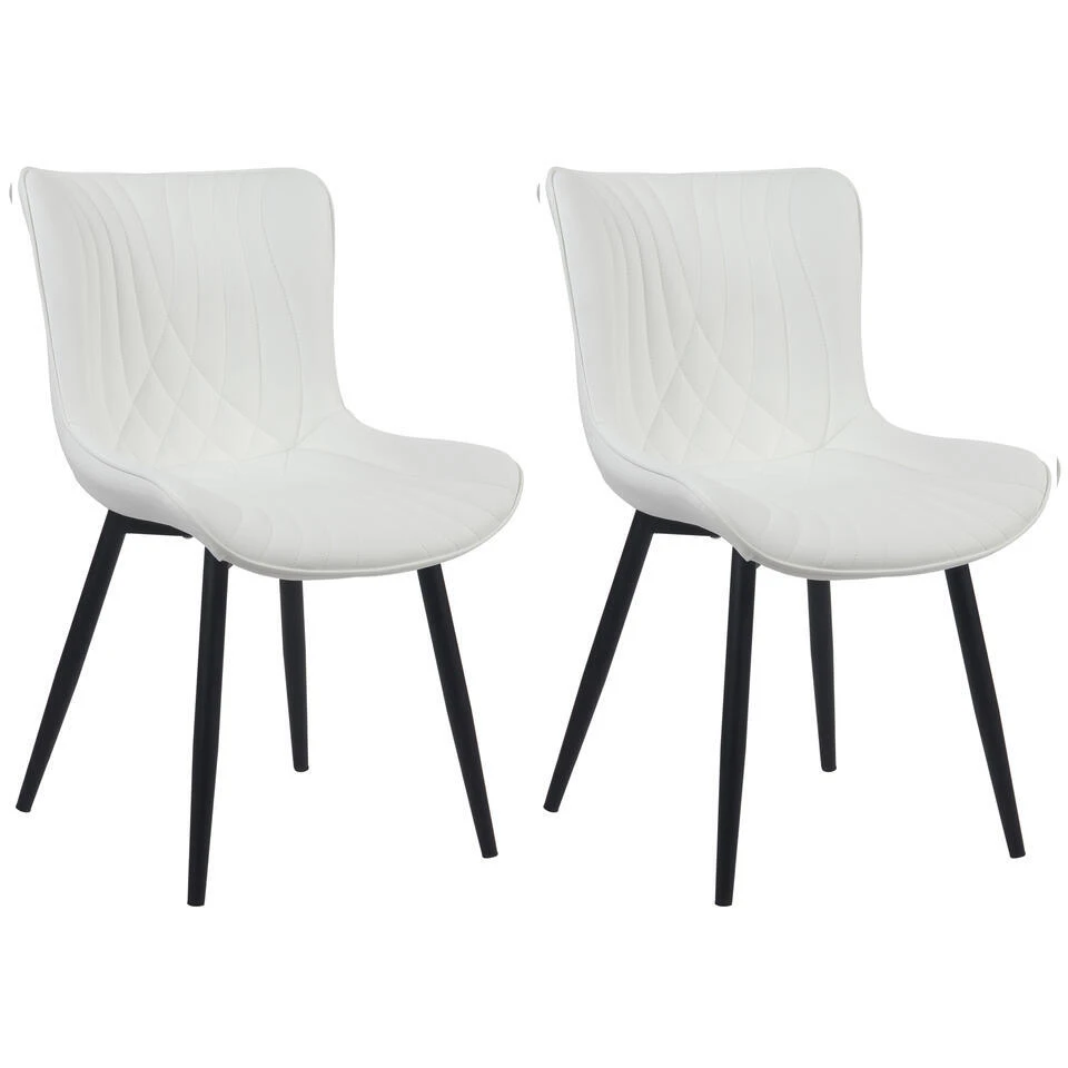 CLP Set Van 2 Eetkamerstoel Brady Zwart Frame – Kunstleer – Wit
