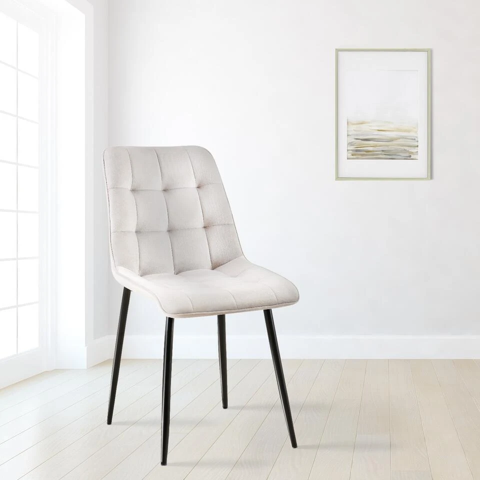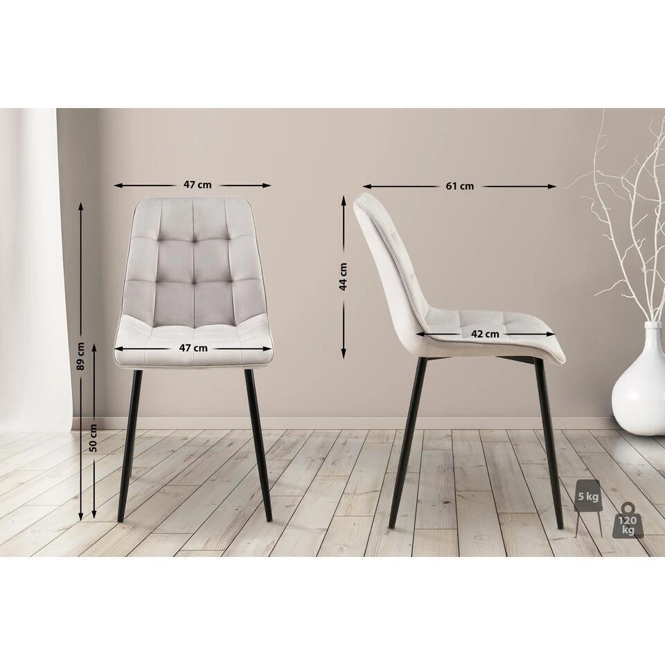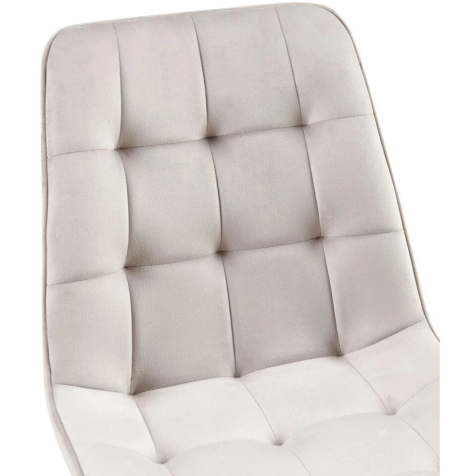De comfortabele bekleding over de zitting en rugleuning is cruciaal voor een comfortabele zit. Zowel de zitschaal als de rugleuning zijn volledig bekleed met een gemakkelijk te onderhouden fluwelen hoes. De chique sierstiksels zorgen voor een opvallend effect.