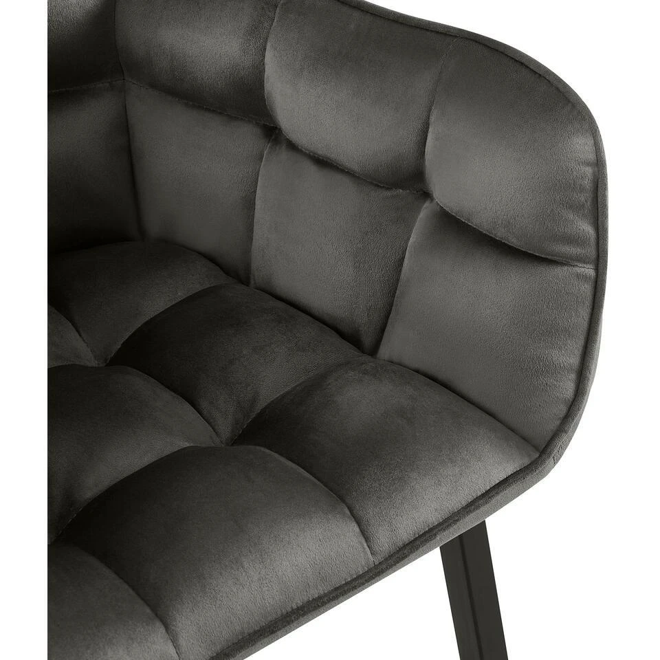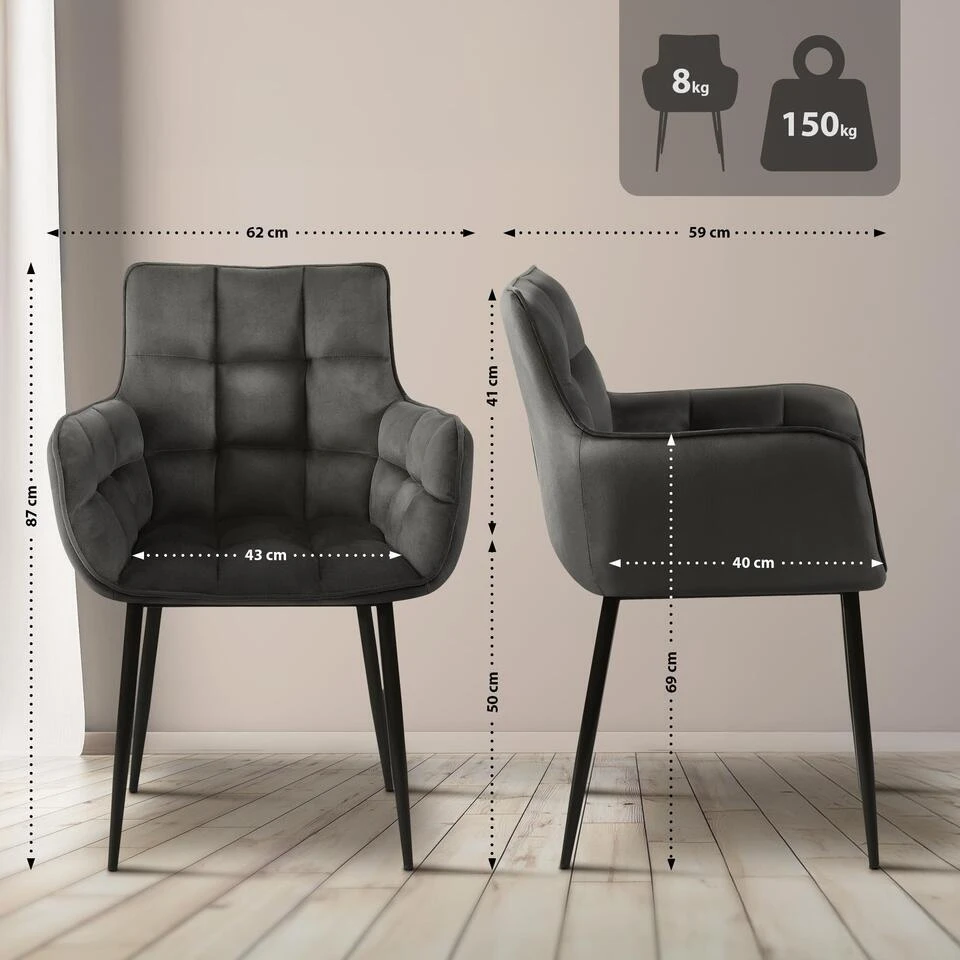 De comfortabele bekleding over de zitting, rugleuning en armleuningen is cruciaal voor een comfortabele zit. De zitschaal en rugleuning zijn volledig bekleed met fluweel. Het geblokte quiltpatroon zorgt voor een verfijnde uitstraling.