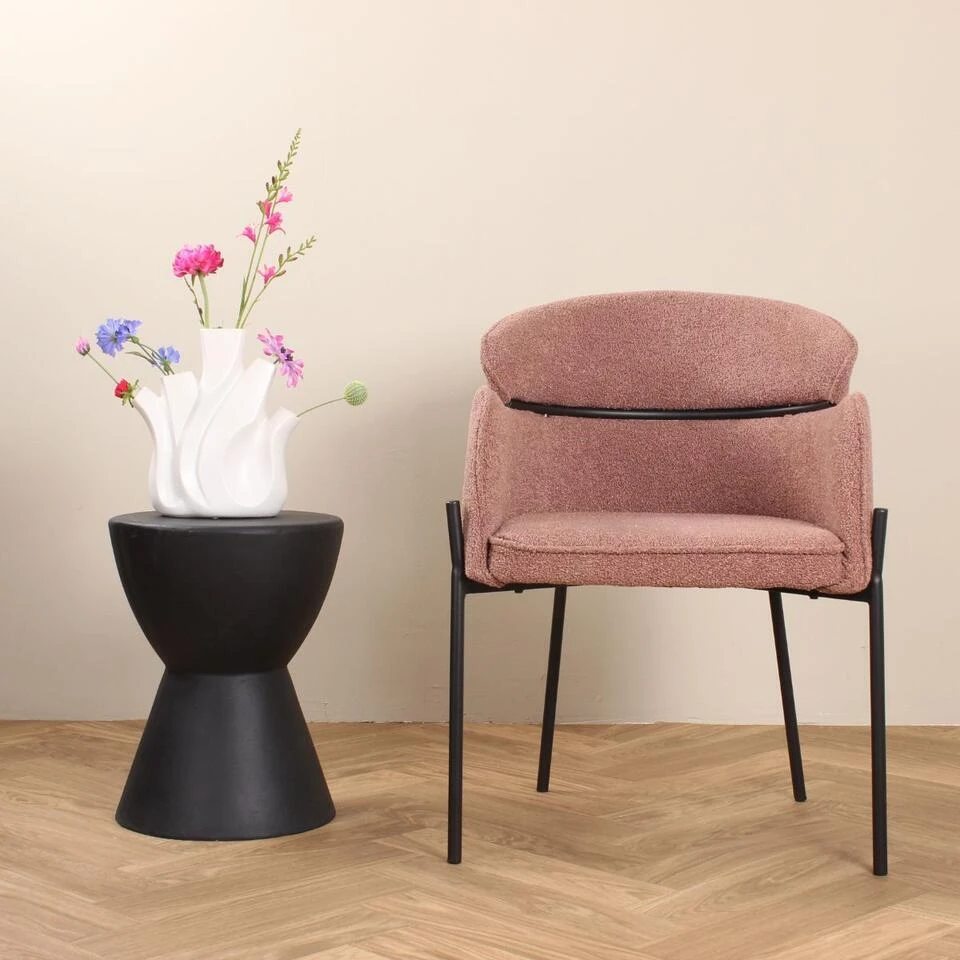 Ontdek de nieuwste toevoeging aan ons assortiment: de Mira eetkamerstoel! Deze prachtige stoel combineert comfort en stijl op een verbluffende manier. Met zijn weelderige bouclé stof voegt hij een vleugje luxe toe aan elke ruimte, terwijl de unieke rugleuning zorgt voor optimale ondersteuning tijdens langdurig zitten. Wat de keuze betreft, heb je de luxe om te kiezen uit drie kleuren: beige, zand en roestbruin. Of je nu een intiem diner organiseert of een gezellig samenzijn met vrienden hebt, de Mira stoel is de perfecte metgezel. Upgrade jouw eetruimte met de Mira stoel en geniet van een mix van elegantie en comfort.