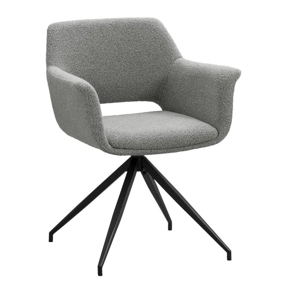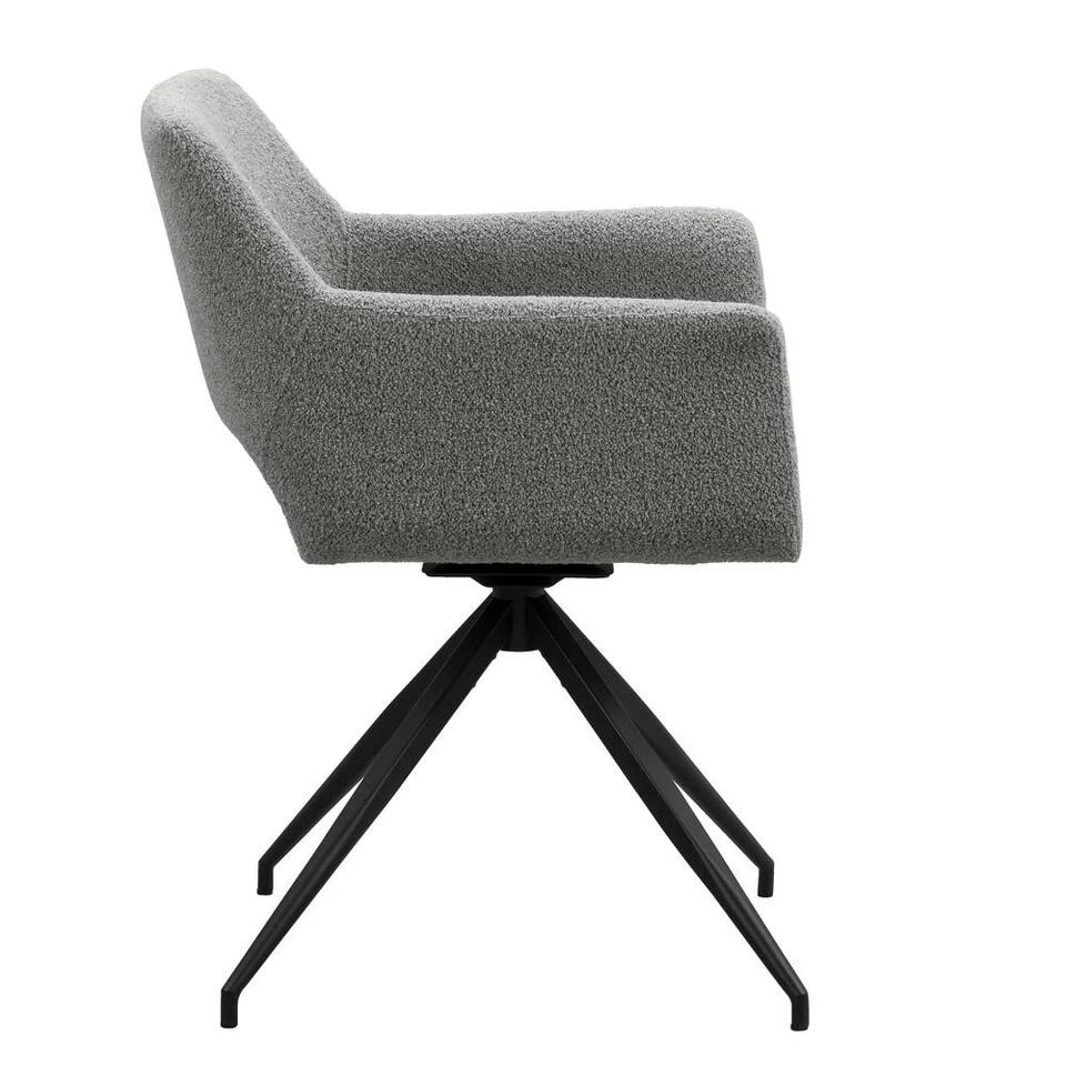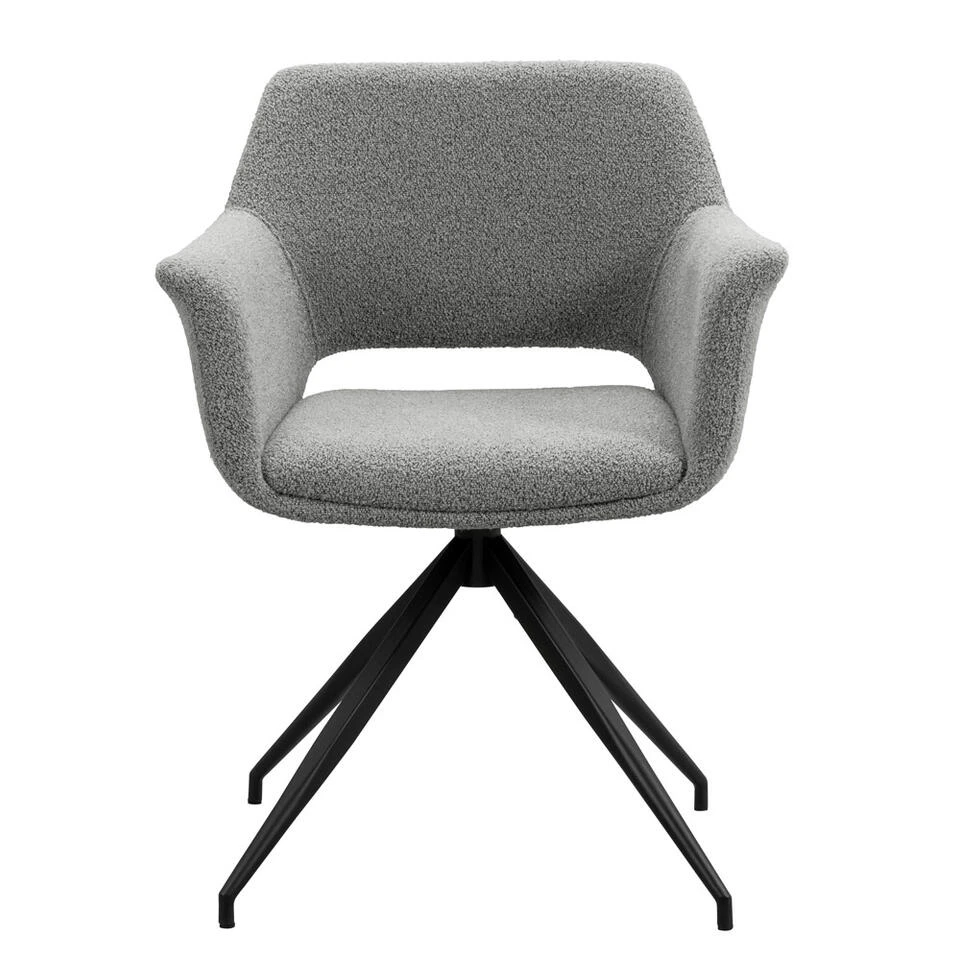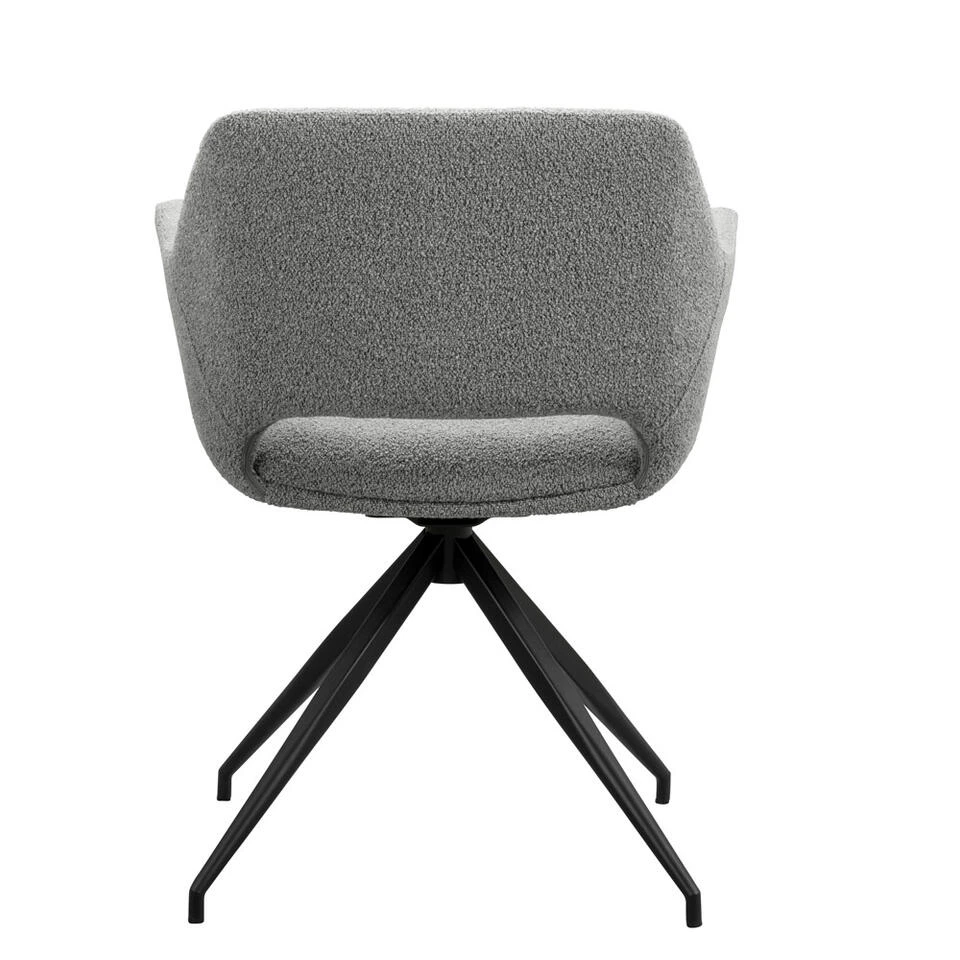 Eetkamerstoel Belle is een elegante stoel met een klassiek design. Met zijn lichtgrijze bekleding en zwarte metalen poten past deze stoel in ieder interieur. Door zijn open rug heeft de stoel een open en frisse, eigentijdse uitstaling. De armleuningen en rugleuningen zorgen voor extra comfort en door het draaibare onderstel van 180 graden kun je makkelijk aanschuiven en uren blijven tafelen. Voeg een vleugje stijl toe aan jouw eetkamer!