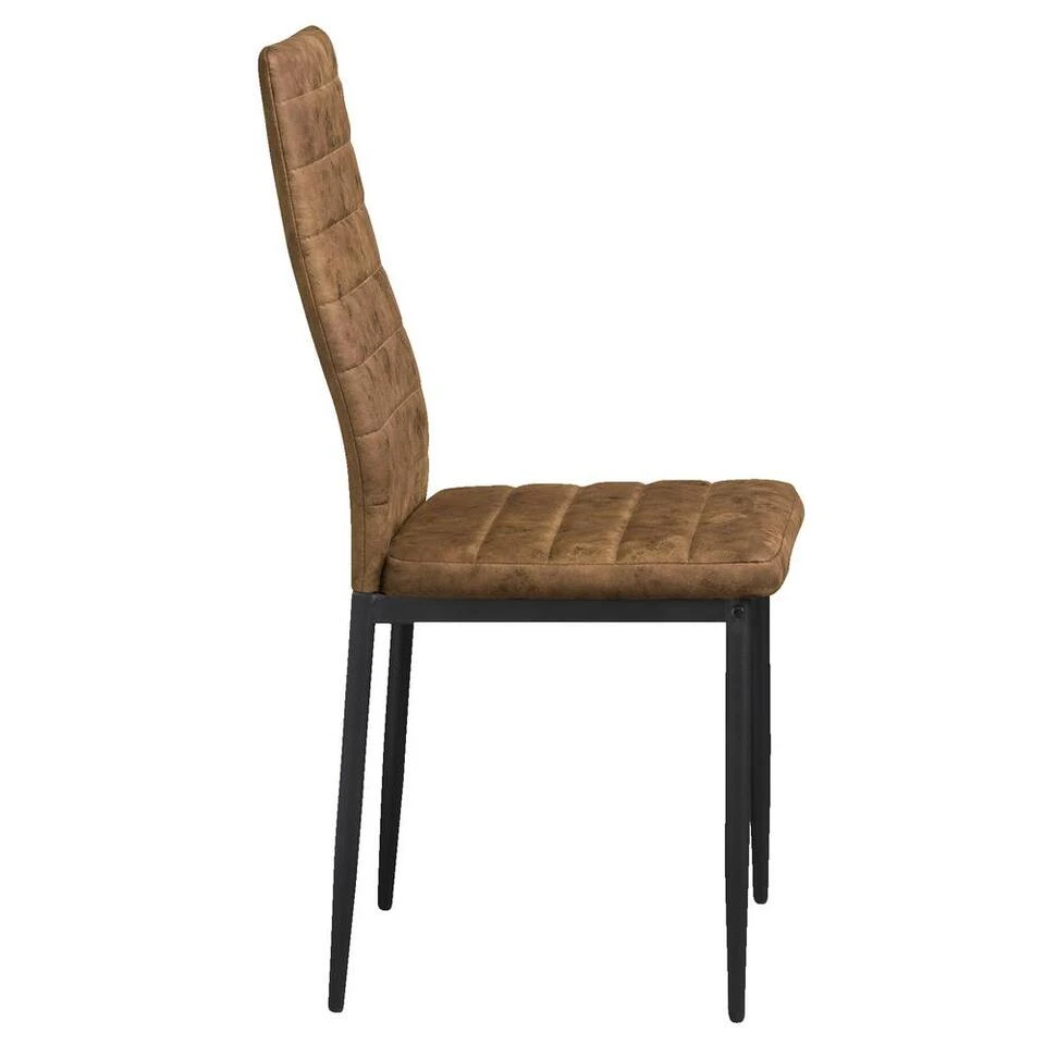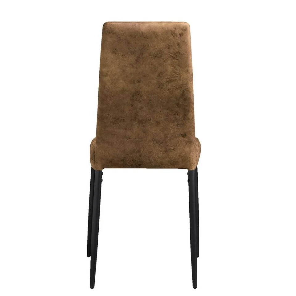 Eetkamerstoel Rowin is een cognac kleurige eetkamerstoel met een modern uiterlijk. De stoel is gestoffeerd en heeft een metalen onderstel. De mooie cognackleur maakt dat de eettafelstoel in vrijwel ieder interieur past. Omdat eetkamerstoel Rowin geen armleuning heeft, past hij onder iedere tafel. Kies er zelf een eetkamertafel bij en creëer een zithoek die helemaal aan jouw wensen voldoet!