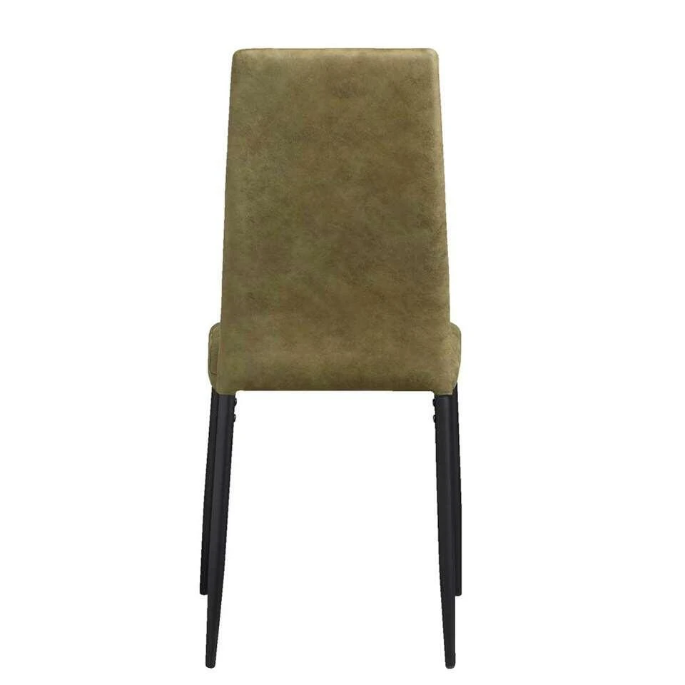 Eetkamerstoel Rowin is een eetkamerstoel met een modern uiterlijk. De eetkamerstoel is gestoffeerd en heeft een metalen onderstel. De mooie olijfgroene kleur maakt dat de eetkamerstoel in vrijwel ieder interieur past. Omdat eetkamerstoel Rowin geen armleggers heeft, past hij onder iedere tafel. Kies er zelf een eetkamertafel bij en creëer een zithoek die helemaal aan jouw wensen voldoet!