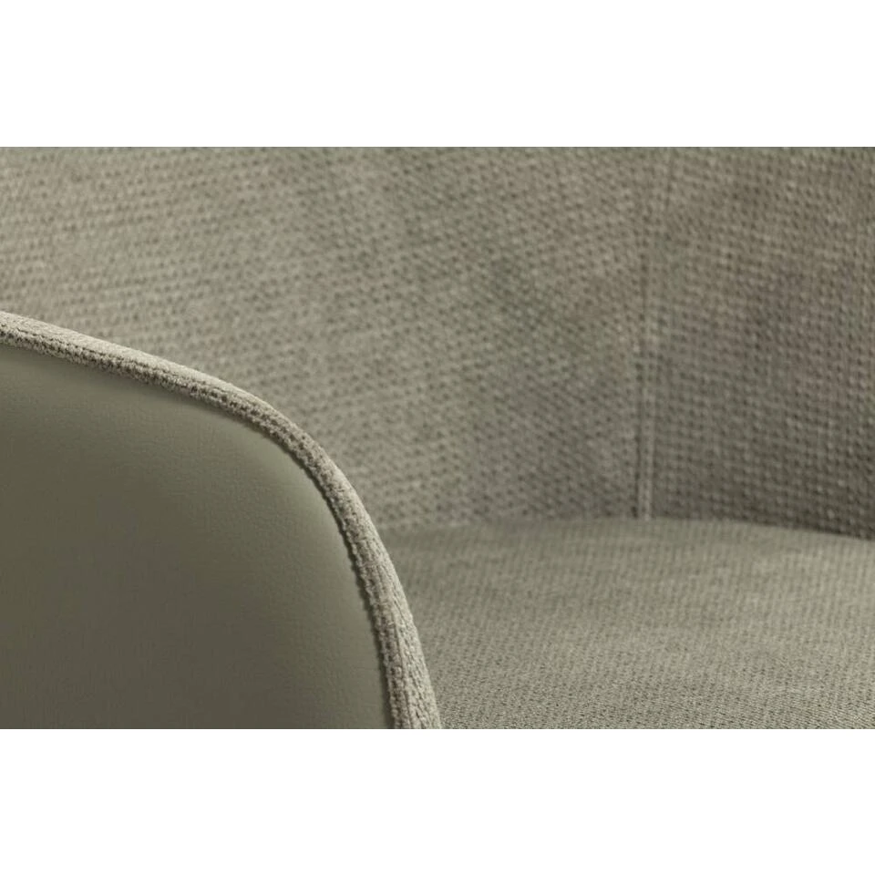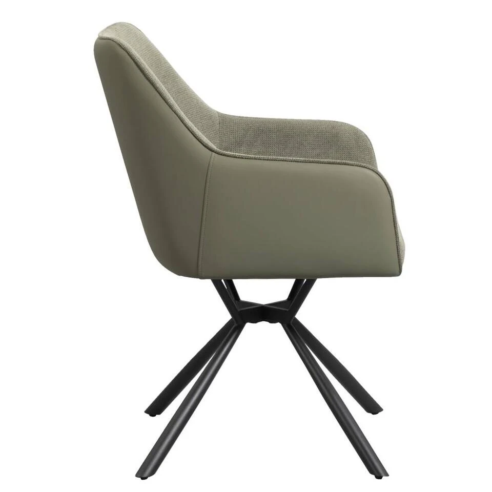 Tafelen doe je comfortabel en in stijl met de Eetkamerstoel Saar. De stoel heeft een zachte en stijlvolle bekleding in een groene kleur en een fijne kuipvormige zitting. De binnenkant van de zitting heeft een zachte stoffen bekleding en de buitenkant een lederlook bekleding. De combinatie van beide stoffen en het zwarte metalen onderstel geven de stoel een stoer en trendy uiterlijk.