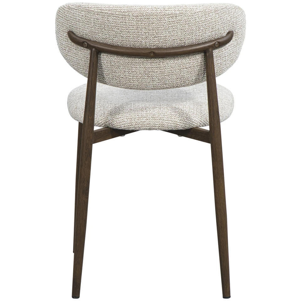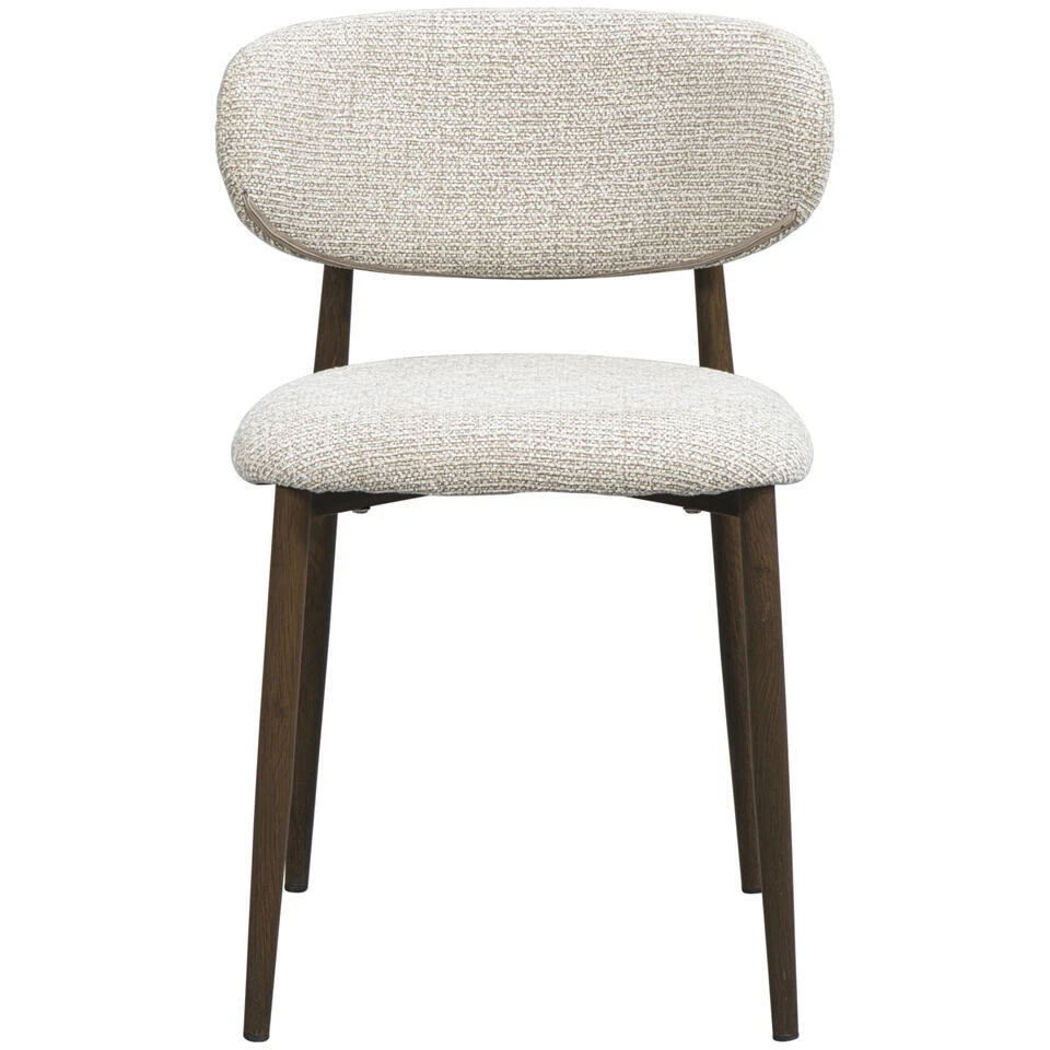 Eetkamerstoel Tibor is een trendy en moderne eetkamerstoel met een stoer onderstel. De stoel is bekleed met een comfortabele stof in de kleur beige en heeft notenhout-look, ijzeren poten. De zitting en rugleuning van eetkamerstoel Tibor geven een geborgen gevoel. Het moderne en eenvoudige design zorgt ervoor dat deze stoel gemakkelijk te combineren is met andere eetkamerstoelen.