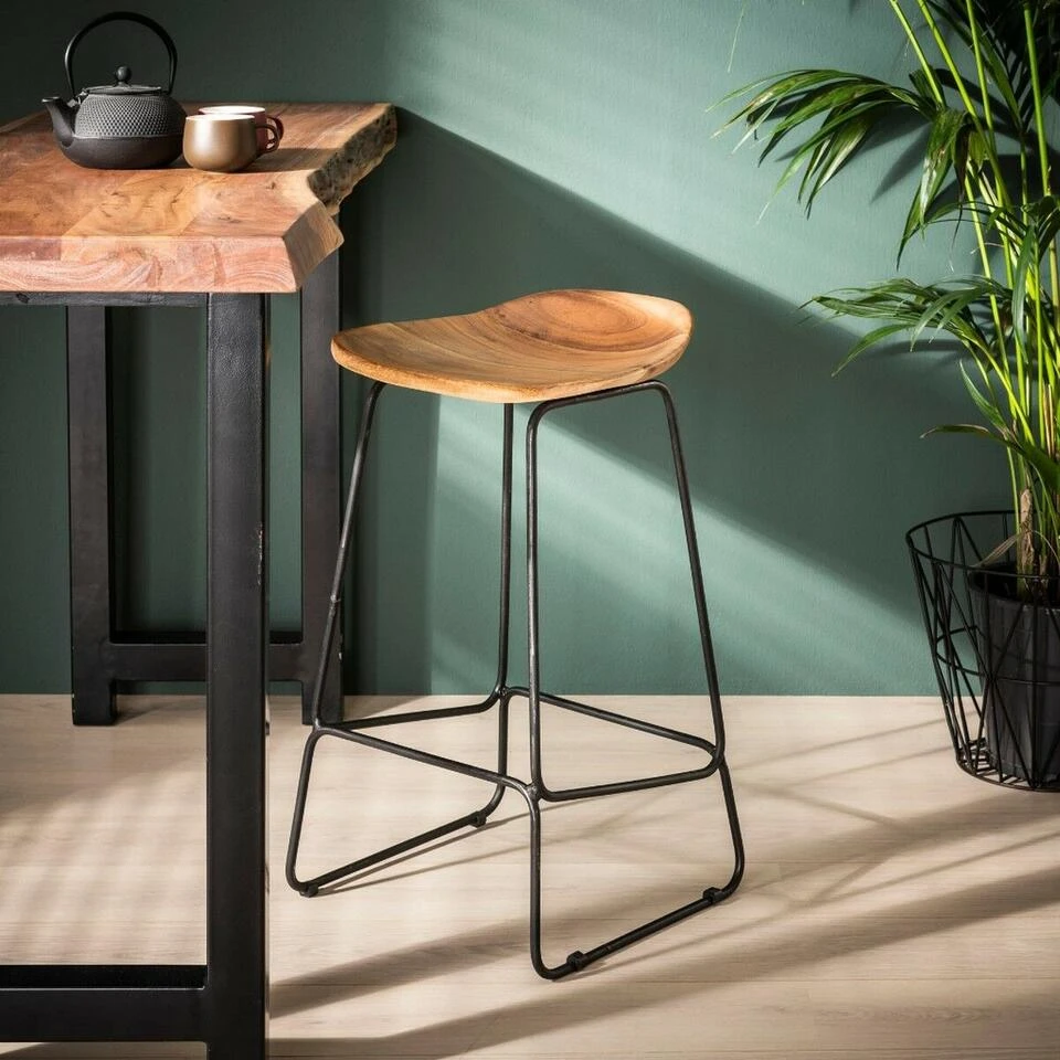 Barkruk Elody is een musthave binnen veel verschillende interieurstijlen! Deze barkruk valt op door zijn prachtige lijnen en het gebruik van natuurlijke materialen. De zitting heeft een comfortabele vorm en is uitgevoerd in prachtig naturelkleurig mangohout. Opvallend aan de zitting is de duidelijk zichtbare houtstructuur en de verschillende kleurtinten. Onder deze zitting bevindt zich het stevige metalen onderstel met een zwarte poedercoating als afwerking. Dit onderstel is tevens voorzien van een handige voetensteun. Plaats barkruk Elody aan de bartafel of het kookeiland en geniet van zijn stoere, trendy en eigentijdse ontwerp. Verkrijgbaar per vier stuks. Zithoogte: 71 cm.