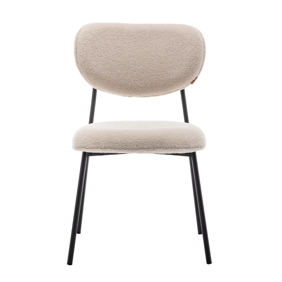 - Luxueuze eetkamerstoel Amalia met zachte teddy stof bekleding en stevige metalen poten