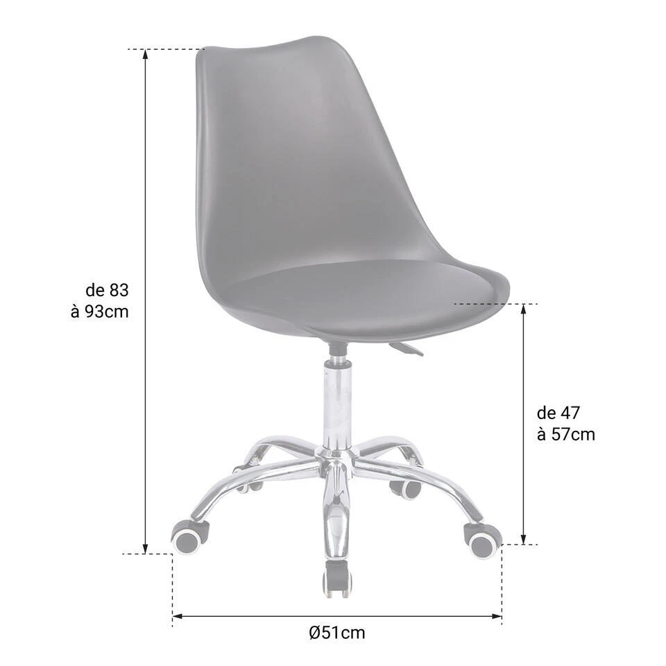 Bent u op zoek naar een kantoor of een werkruimte in uw huis? Met bureaustoel ANNE maakt u uw meubilair compleet, zelfs als u een kleine ruimte hebt. Hij is verkrijgbaar in verschillende kleuren en zal perfect passen in uw kamer. Door zijn moderne en verfijnde vormgeving past hij gemakkelijk in elke interieurstijl. Hij is voorzien van wielen en een draaibare zitting, zodat u zich probleemloos van de ene naar de andere plaats kunt verplaatsen. De hoogte van deze bureaustoel kan in een handomdraai aan uw bureau worden aangepast. De stoel is comfortabel dankzij de omhullende kuip en het zachte zitkussen. Kies voor de efficiëntie van onze bureaustoel.