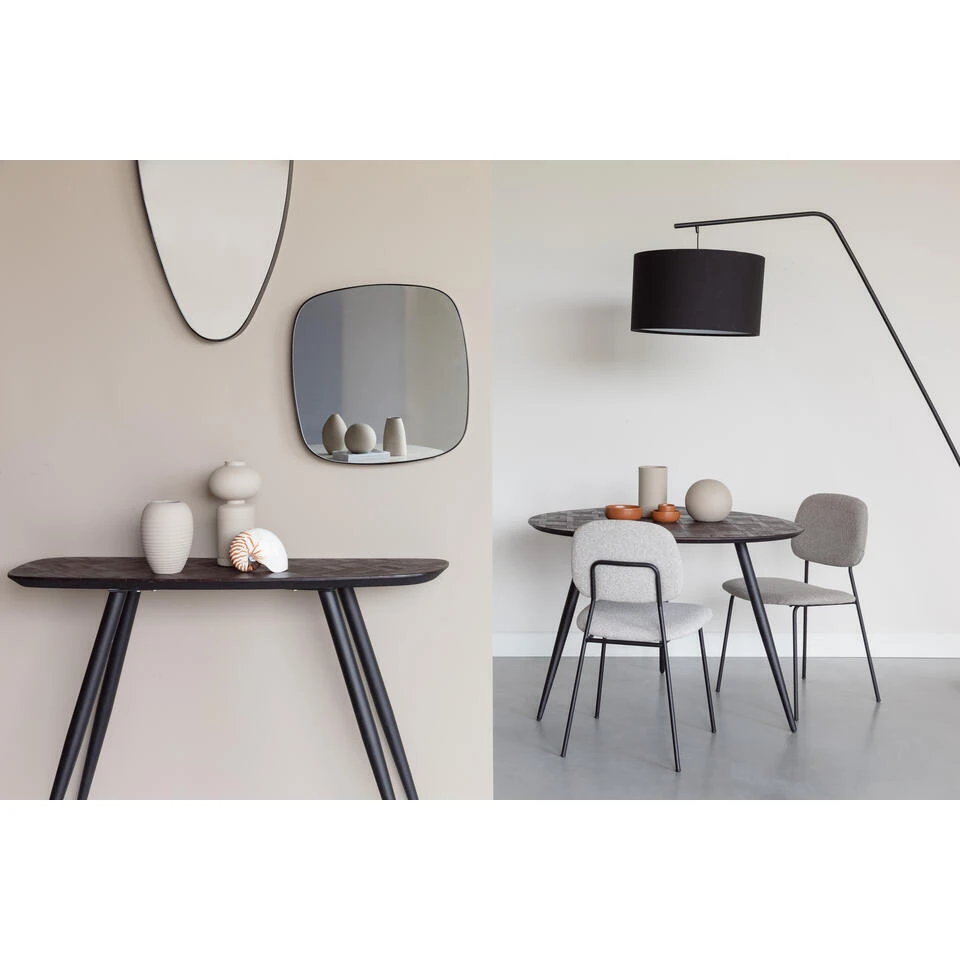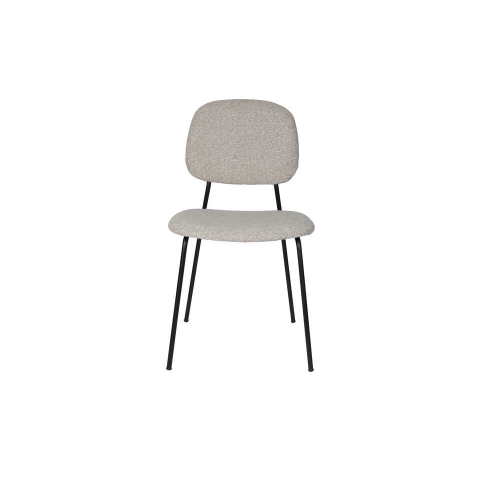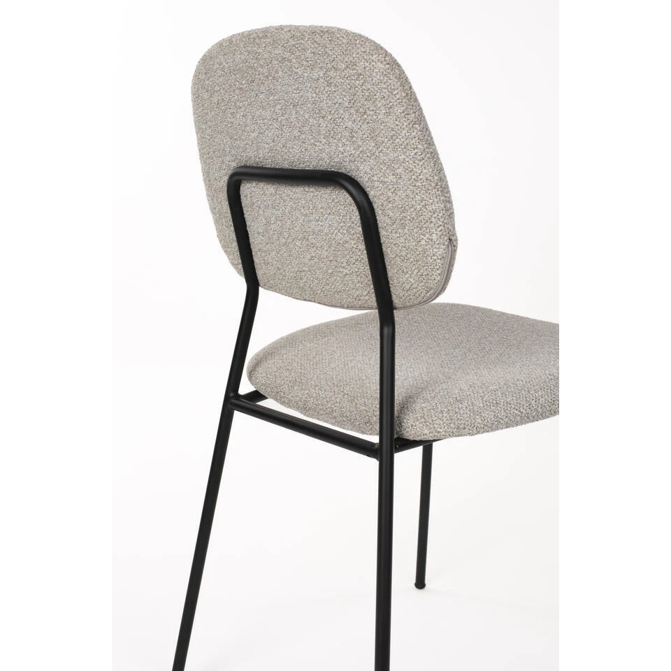 De Roos stoel is een mix van speelsheid en comfort voor je eetkamer. Gemaakt van een zacht gemêleerde stof in elegante grijstinten. De zwart mat gepoedercoate stalen buispoten voegen een modern tintje toe en zorgen voor een chique uitstraling.