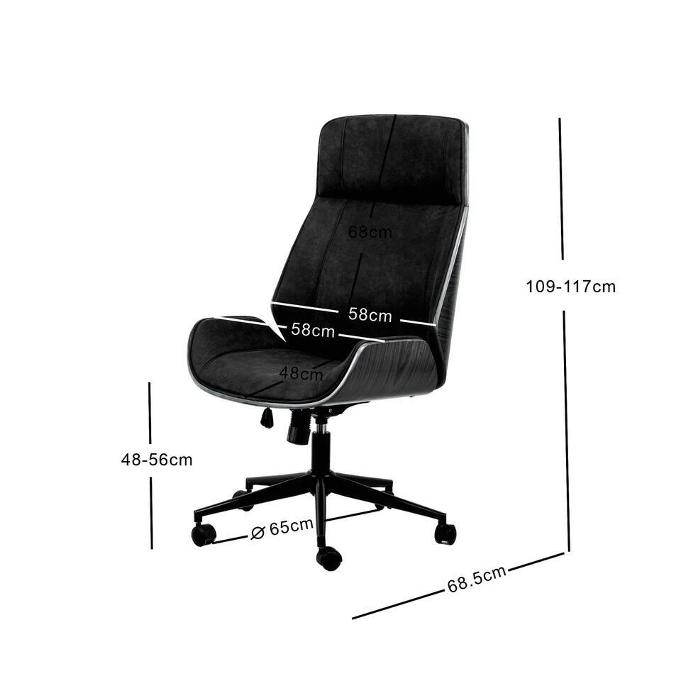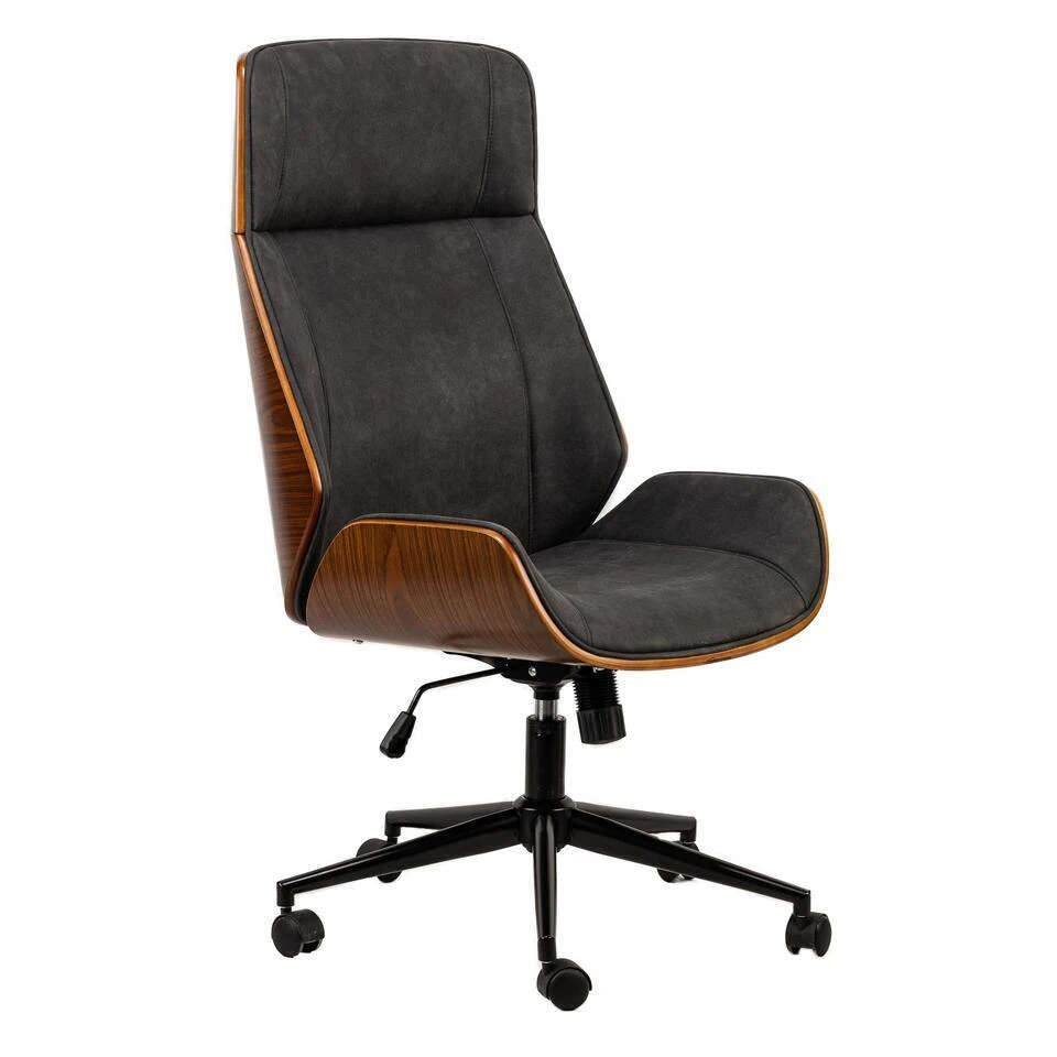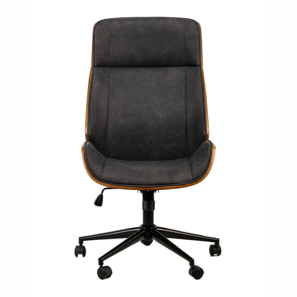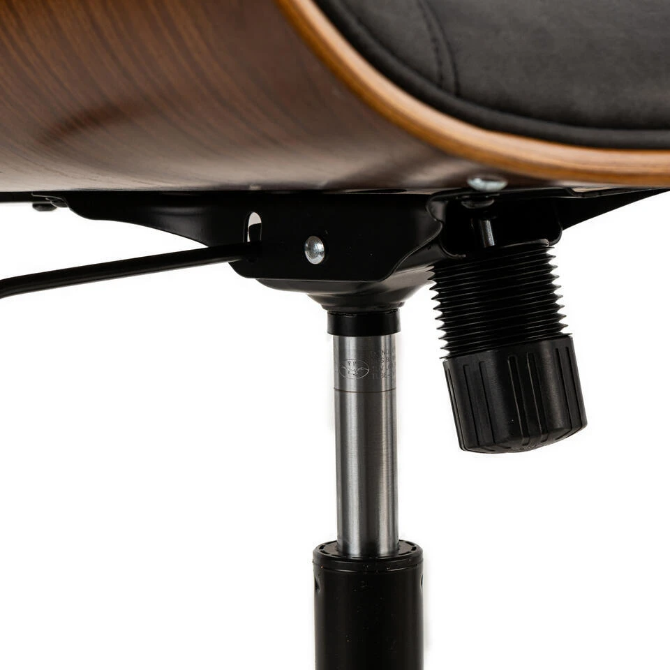 Houten En Zwarte Kunstleren Bureaustoel